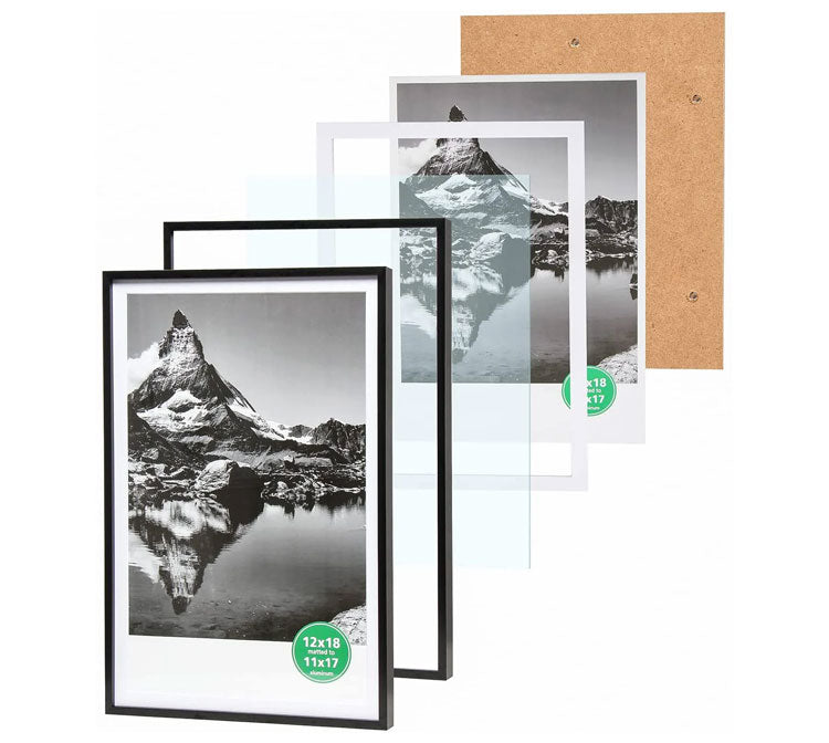 11" x 14" Aluminum Metal Picture Frame with Tempered Glass, 8" x 10" Matted