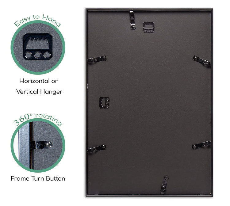 It's clean-lined, square profile borders allow you to use this frame in both traditional, as well as, modern home décor. While its rectangular shape and hanging hardware allow it to be hanged both horizontally and vertically.