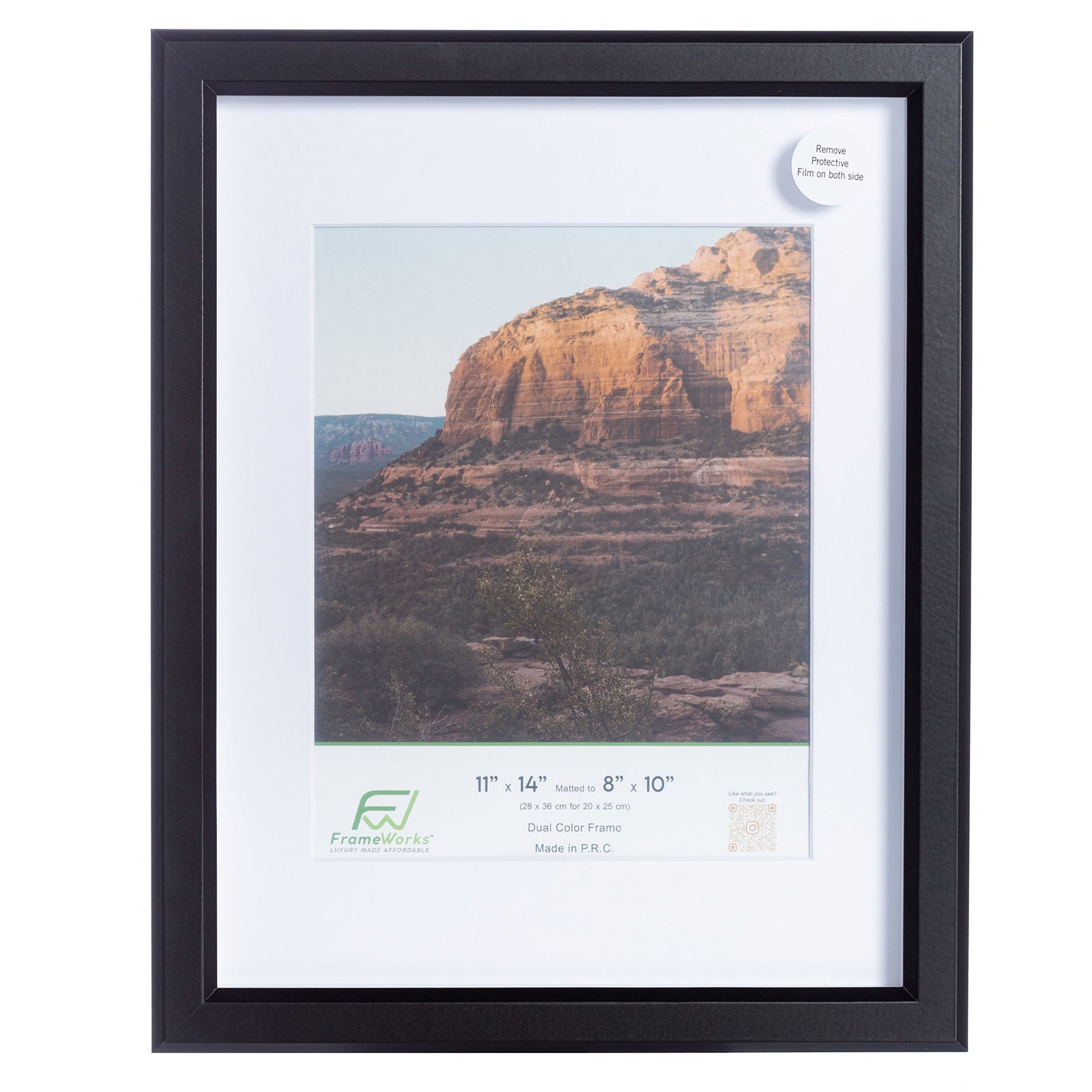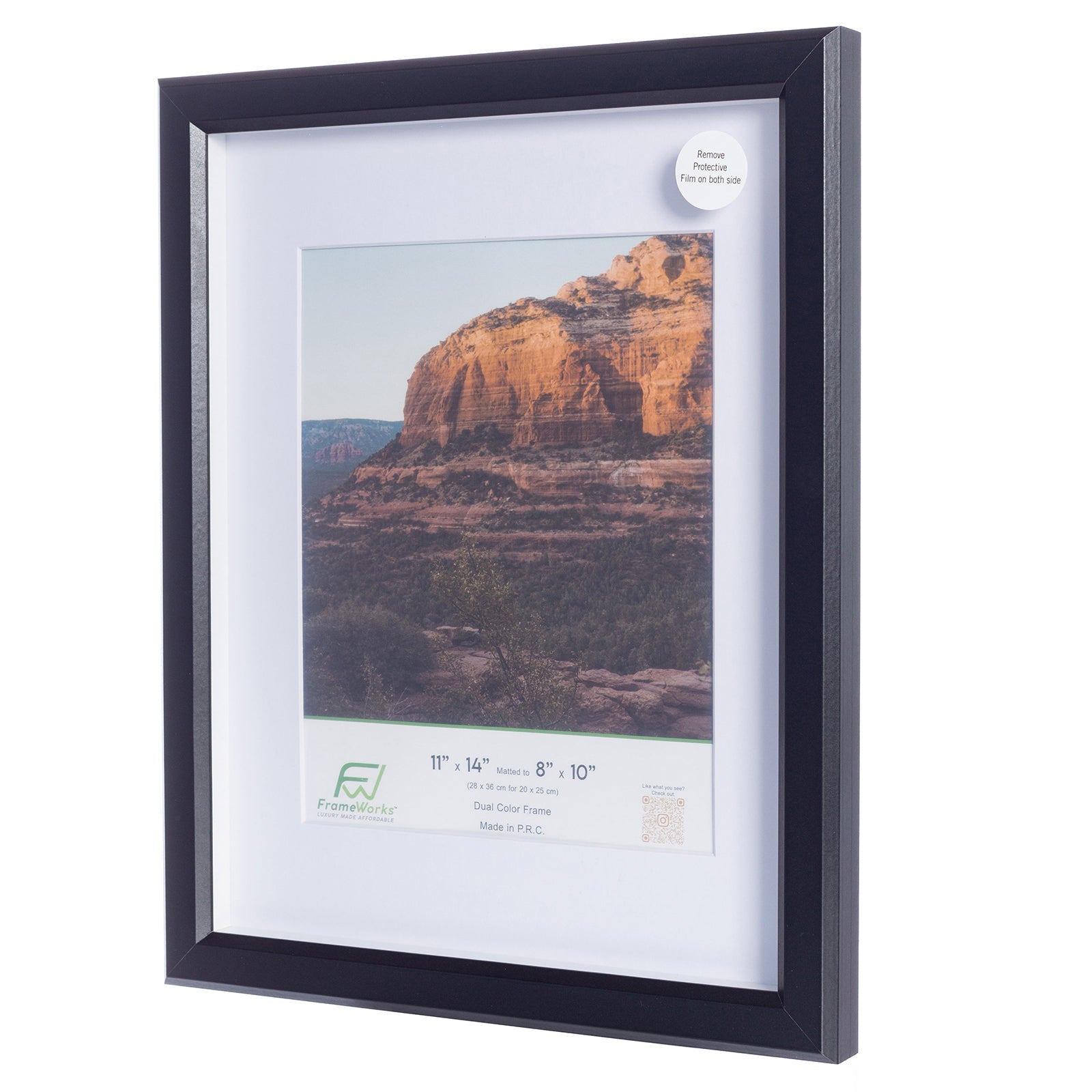 - Modern Design – 1 3/8" Thick sleek wide black beveled edges and each frame comes with a beveled cut classic white mat. Window opening is 10 ¼” x 13 ¼” mat opening 7 ½” x 9 ½”.