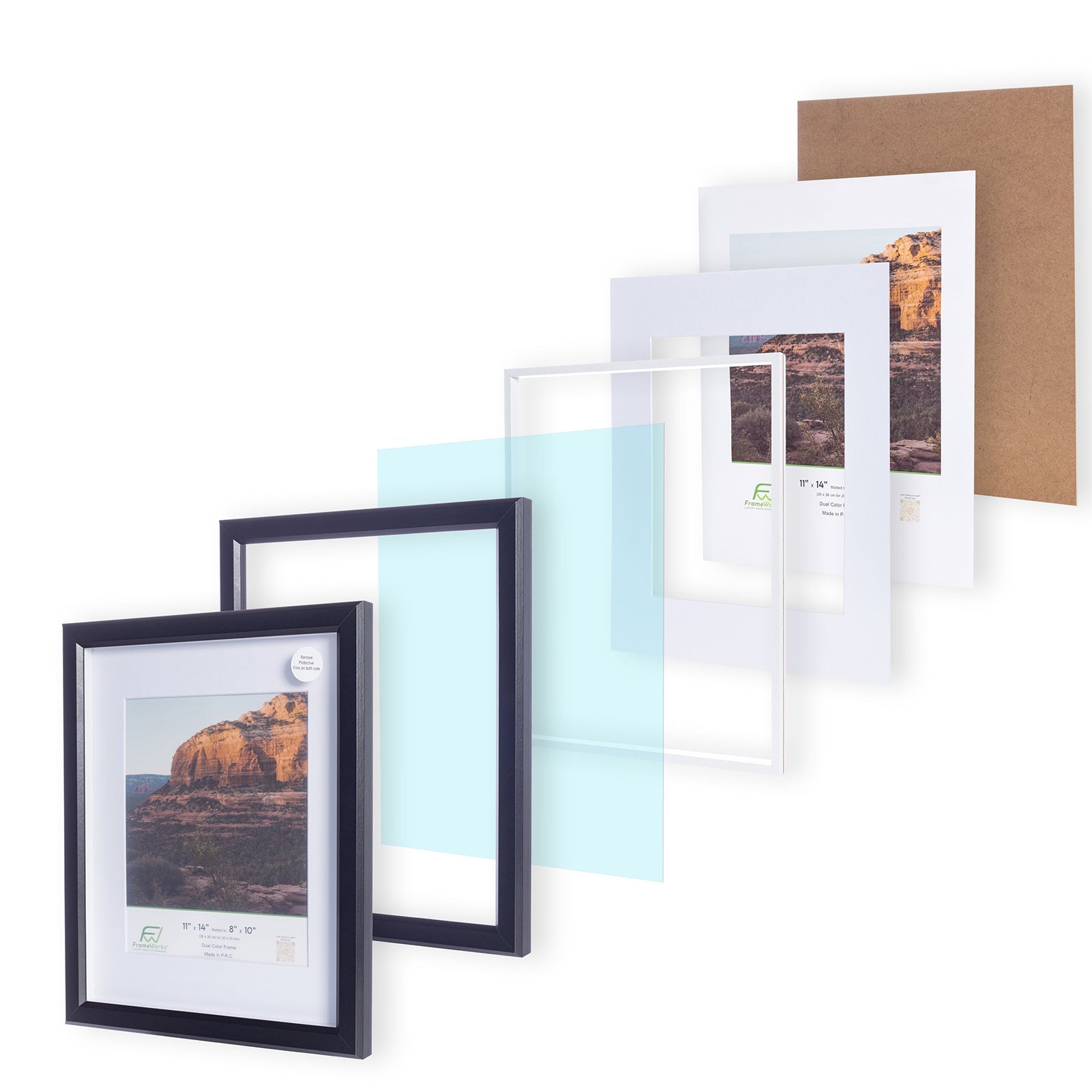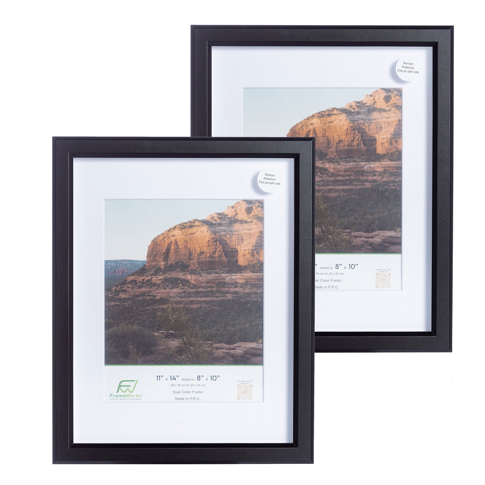 - Sturdy Frames – These durable wooden frames each hold an 11” x 14” photo or use the included mat to hold an 8” x 10” photo. Or use it as a shadow box with 0.5" rabbet depth inside.