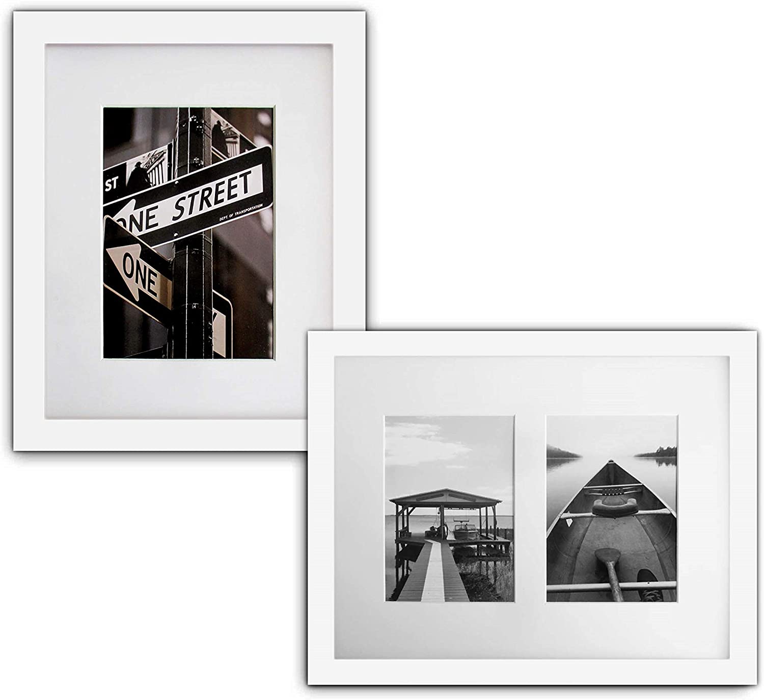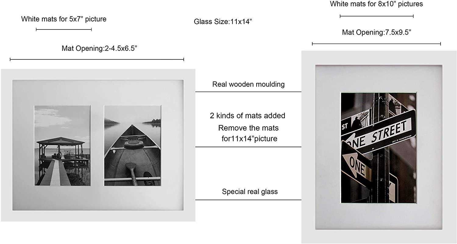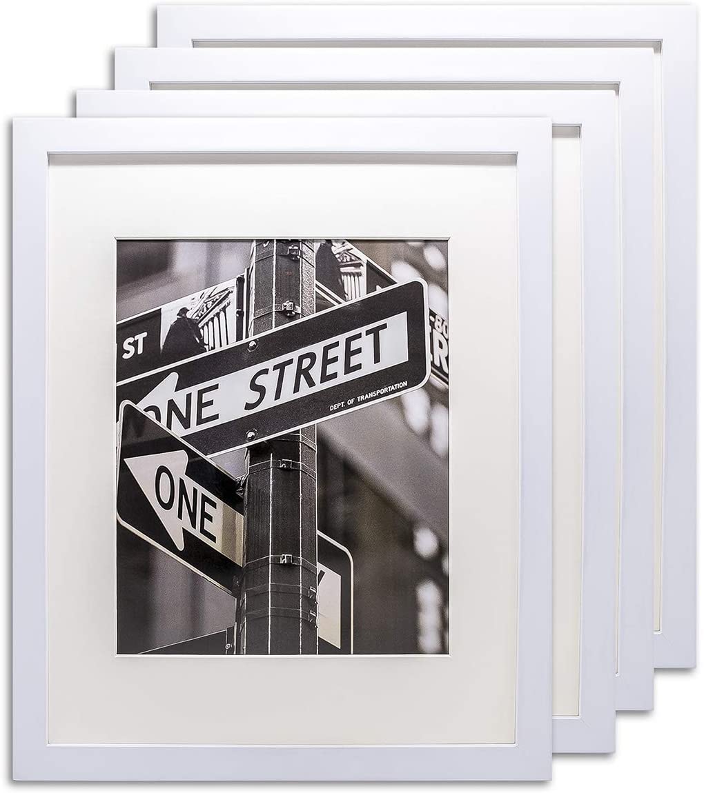 11" x 14" White Solid Pine Wood Picture Frames with Tempered Glass, 8" x 10" Matted