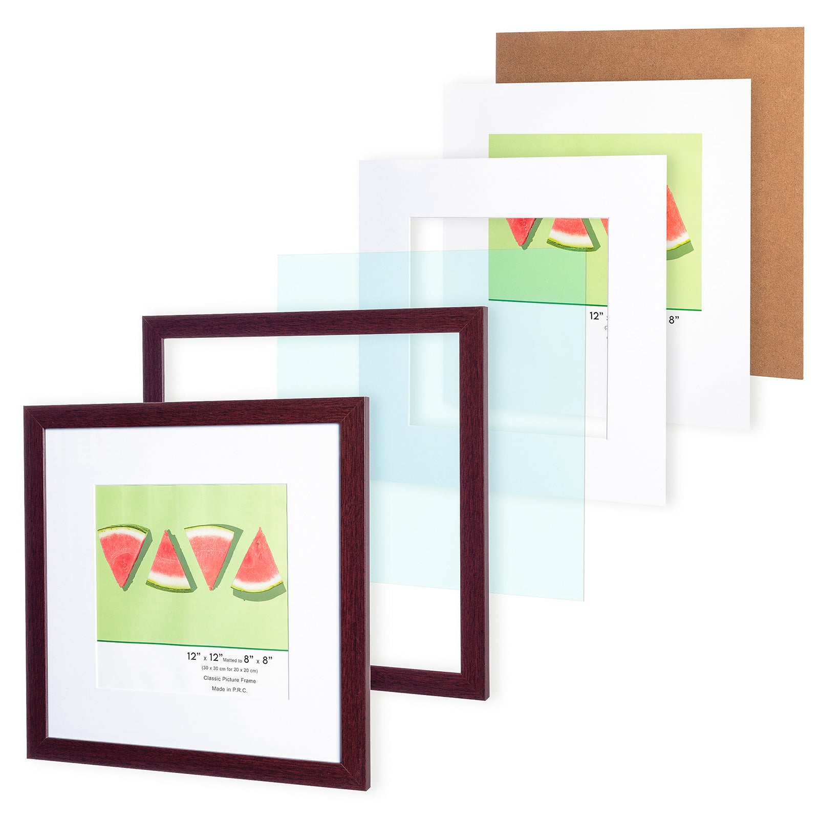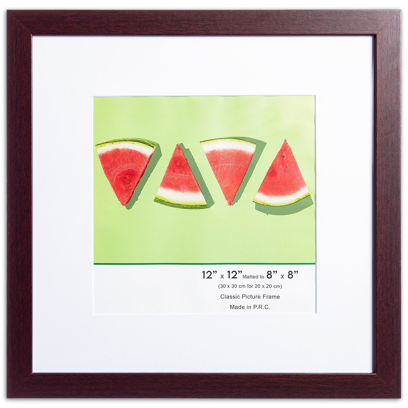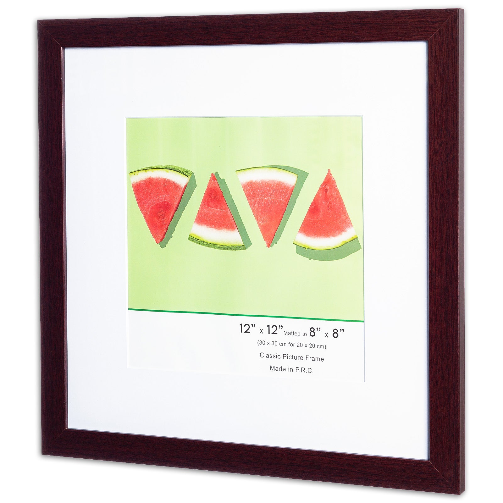 12" x 12” Classic Mahogany MDF Wood Picture Frame with Tempered Glass, 8" x 8" Matted