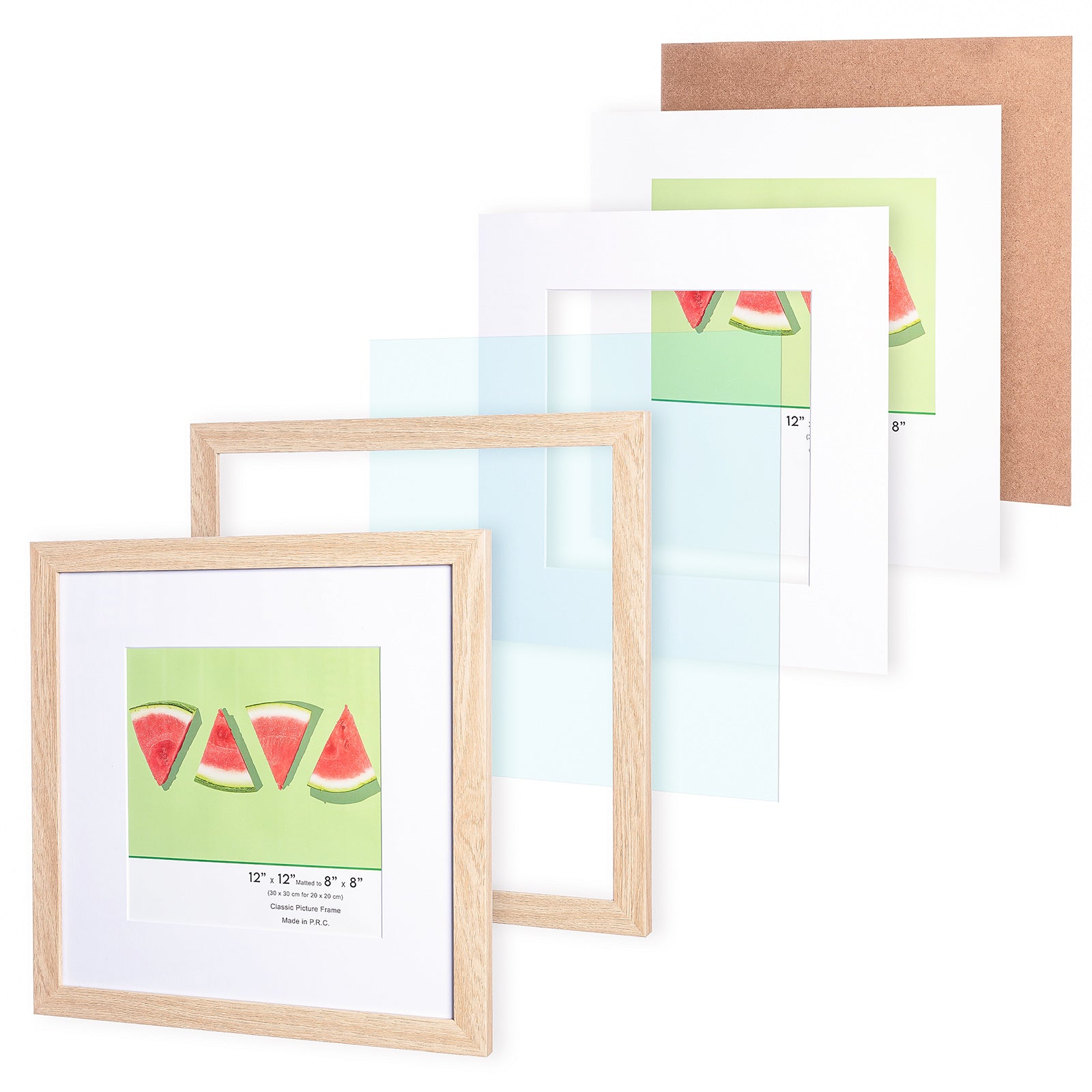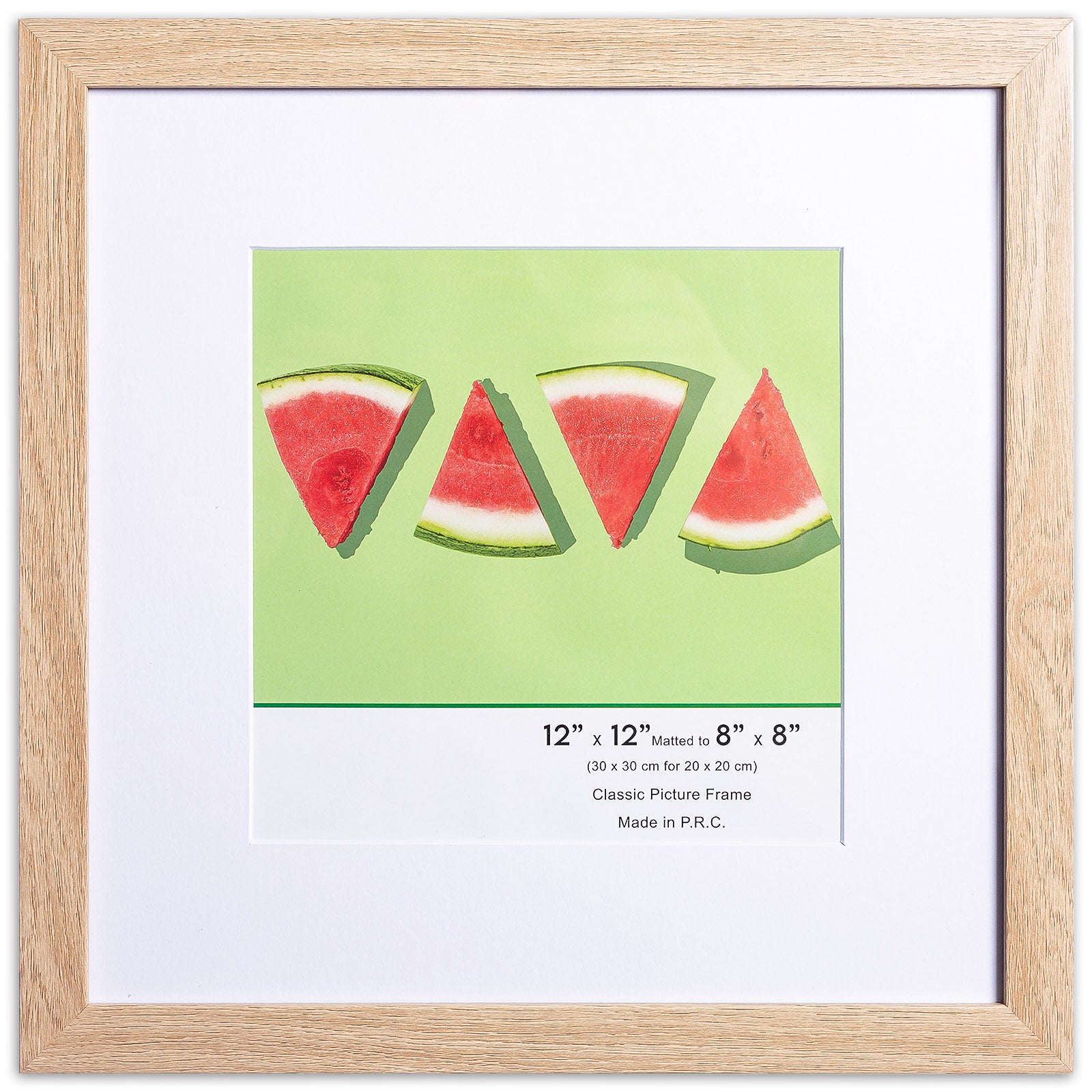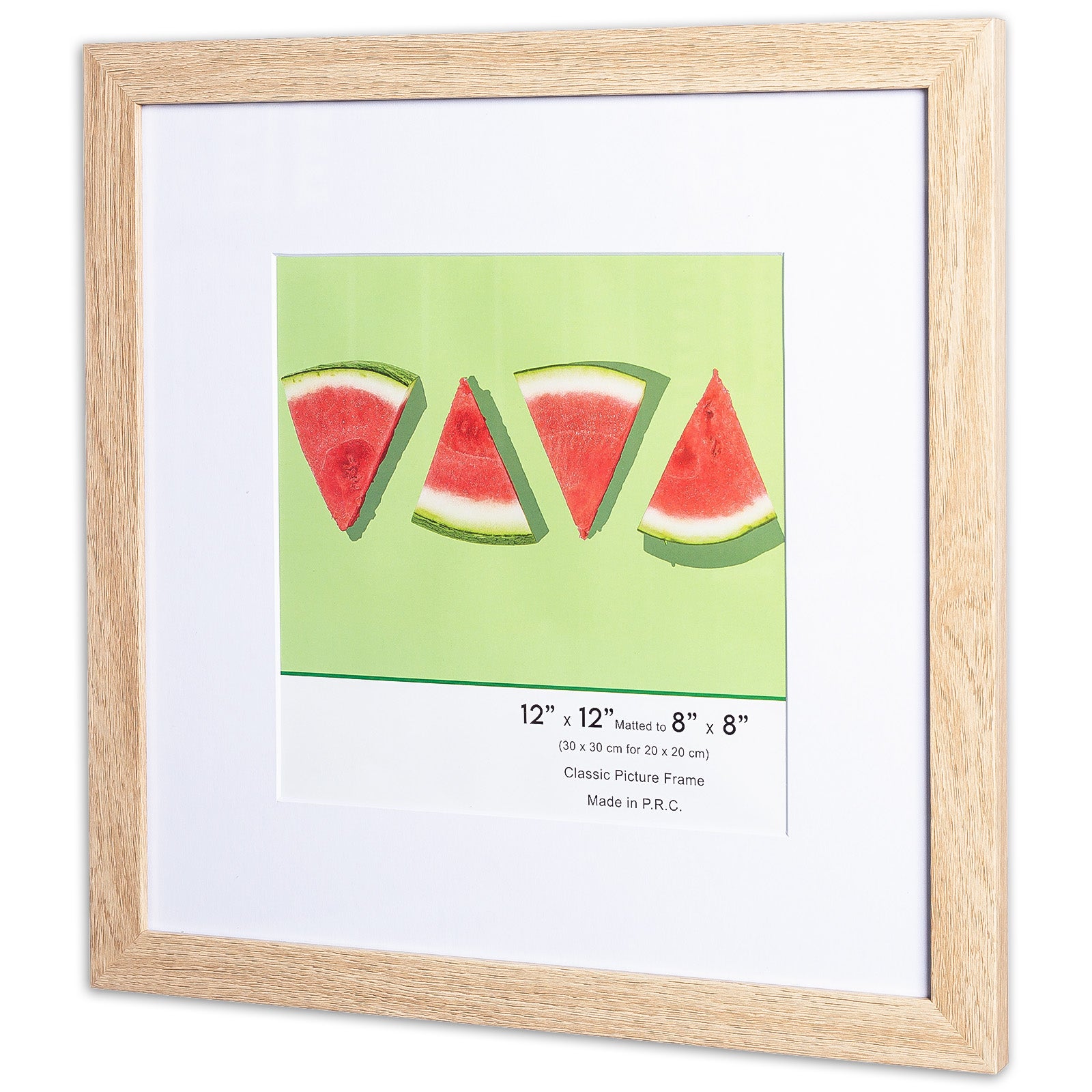 12" x 12” Classic Natural Oak MDF Wood Picture Frame with Tempered Glass, 8" x 8" Matted