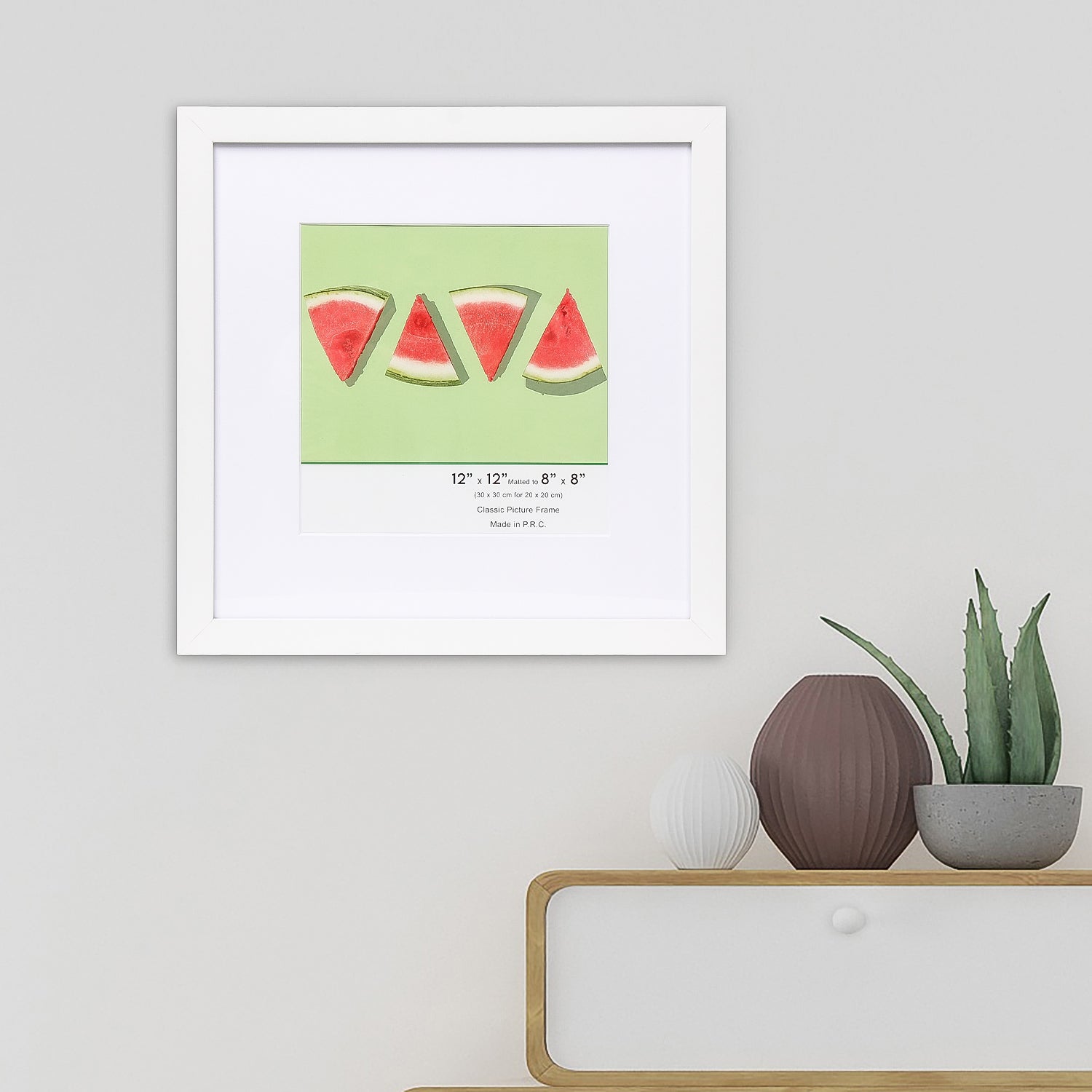12" x 12” Classic White MDF Wood Picture Frame with Tempered Glass, 8" x 8" Matted