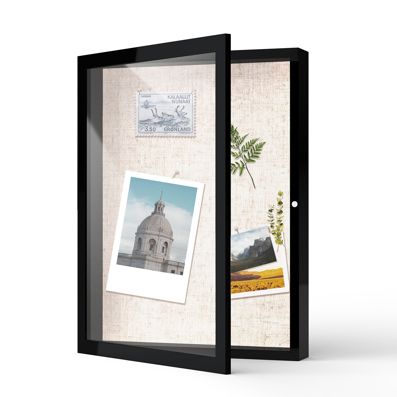 • 12" x 16" Linen Display Board: Ideal for pinning photos, notes & other memorabilia. Allowing easy customization & creative displays; making it simple to showcase & rearrange your cherished items as often as you like.