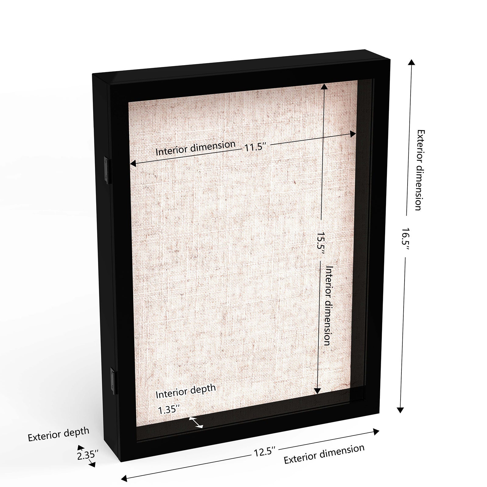 12" x 16" Black MDF Wood Linen Backboard Shadow Box Frame
