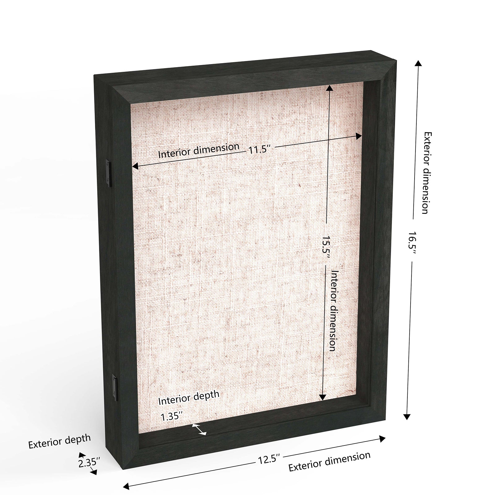 12" x 16" Black Woodgrain MDF Wood Linen Backboard Shadow Box Frame