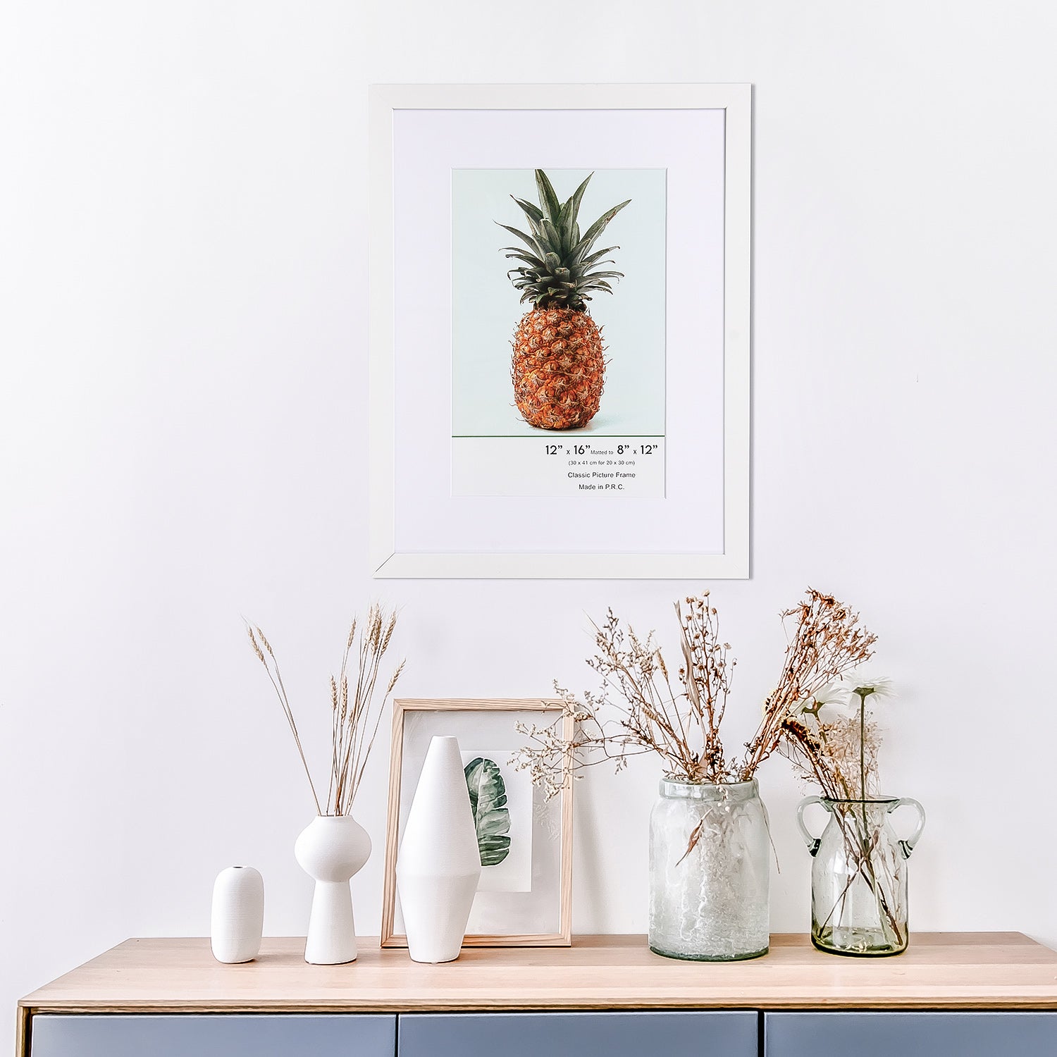12" x 16” Classic White MDF Wood Picture Frame with Tempered Glass, 8" x 12" Matted