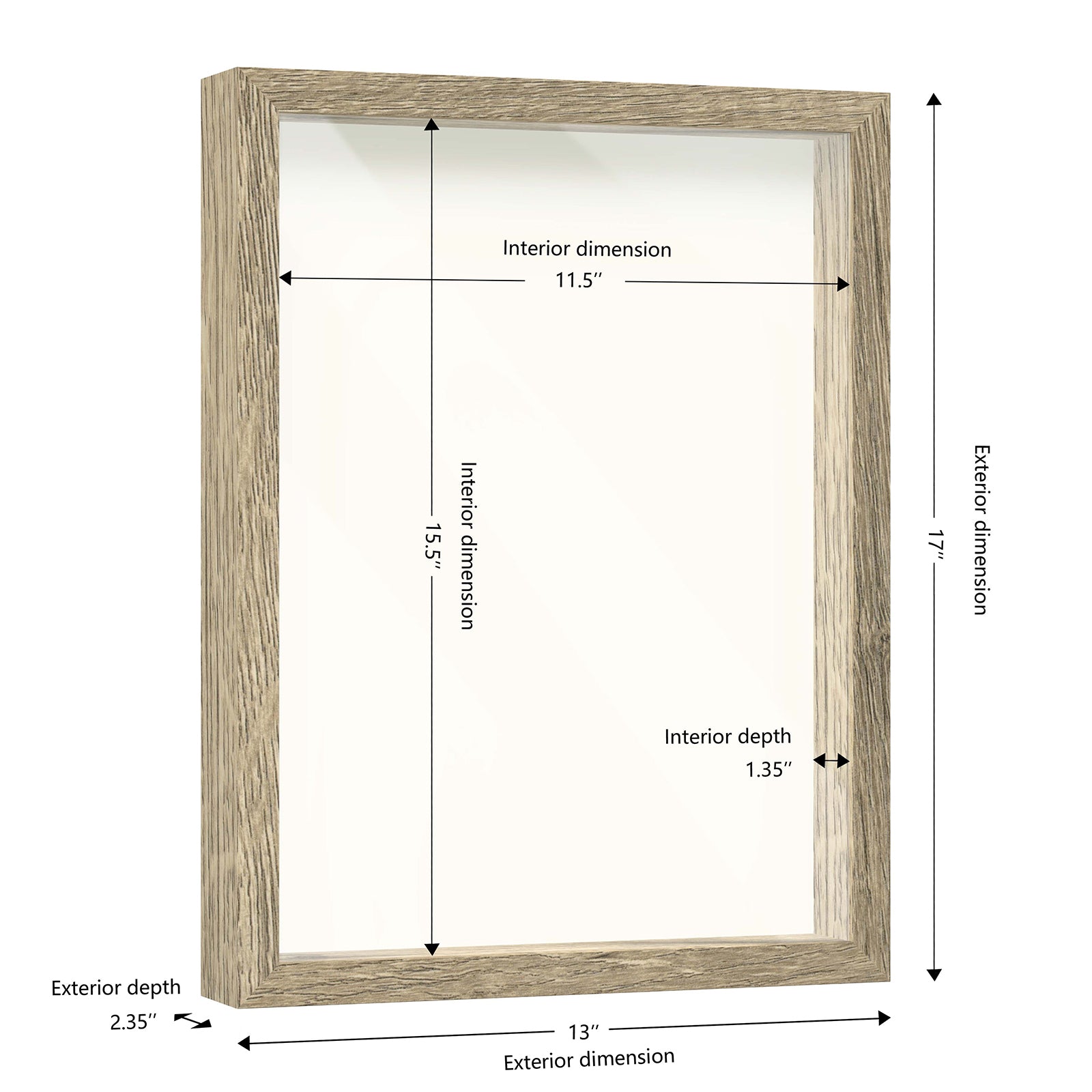 12" x 16" Natural Driftwood Finish MDF Wood Shadow Box Frame