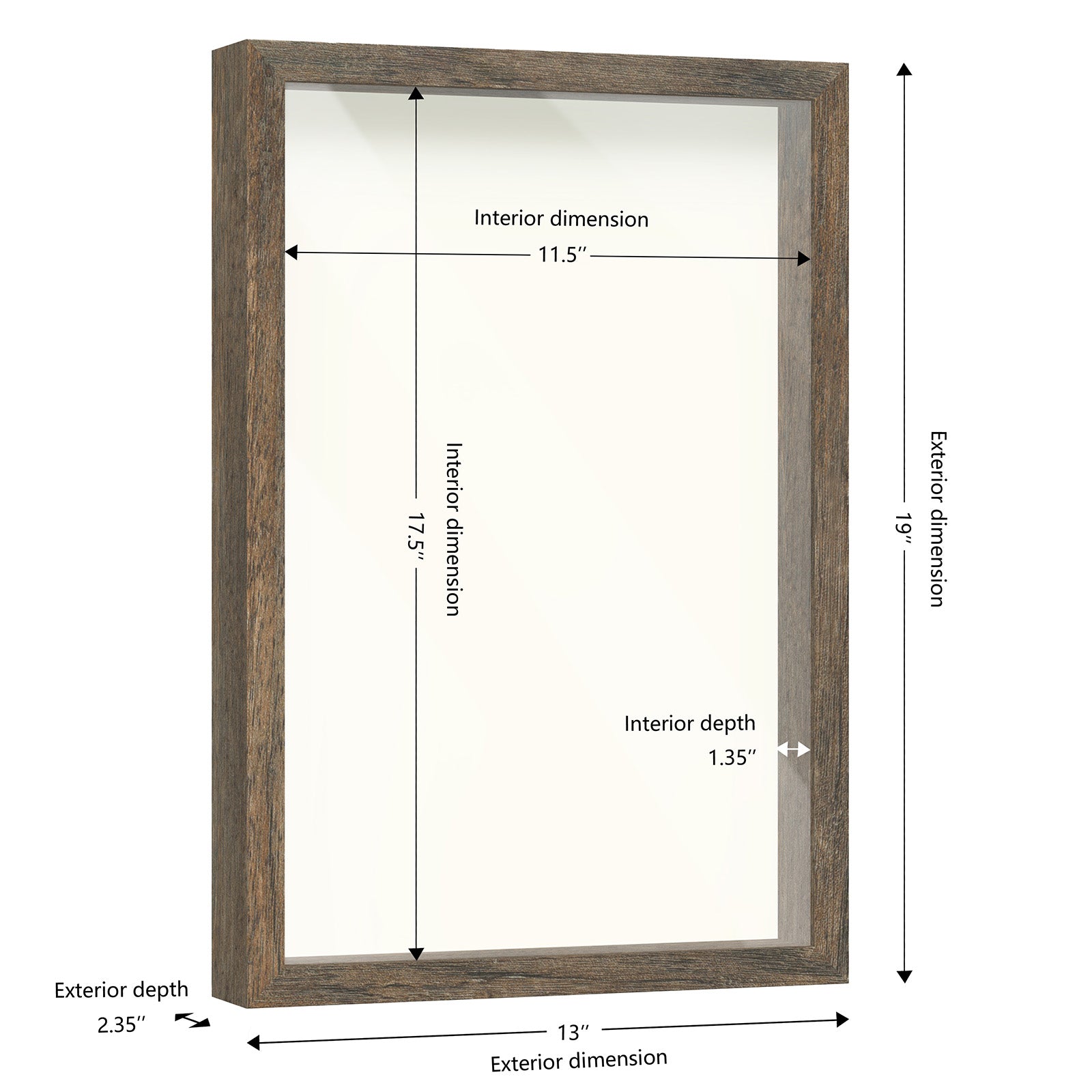 12" x 18" Brown Driftwood Finish MDF Wood Shadow Box Frame