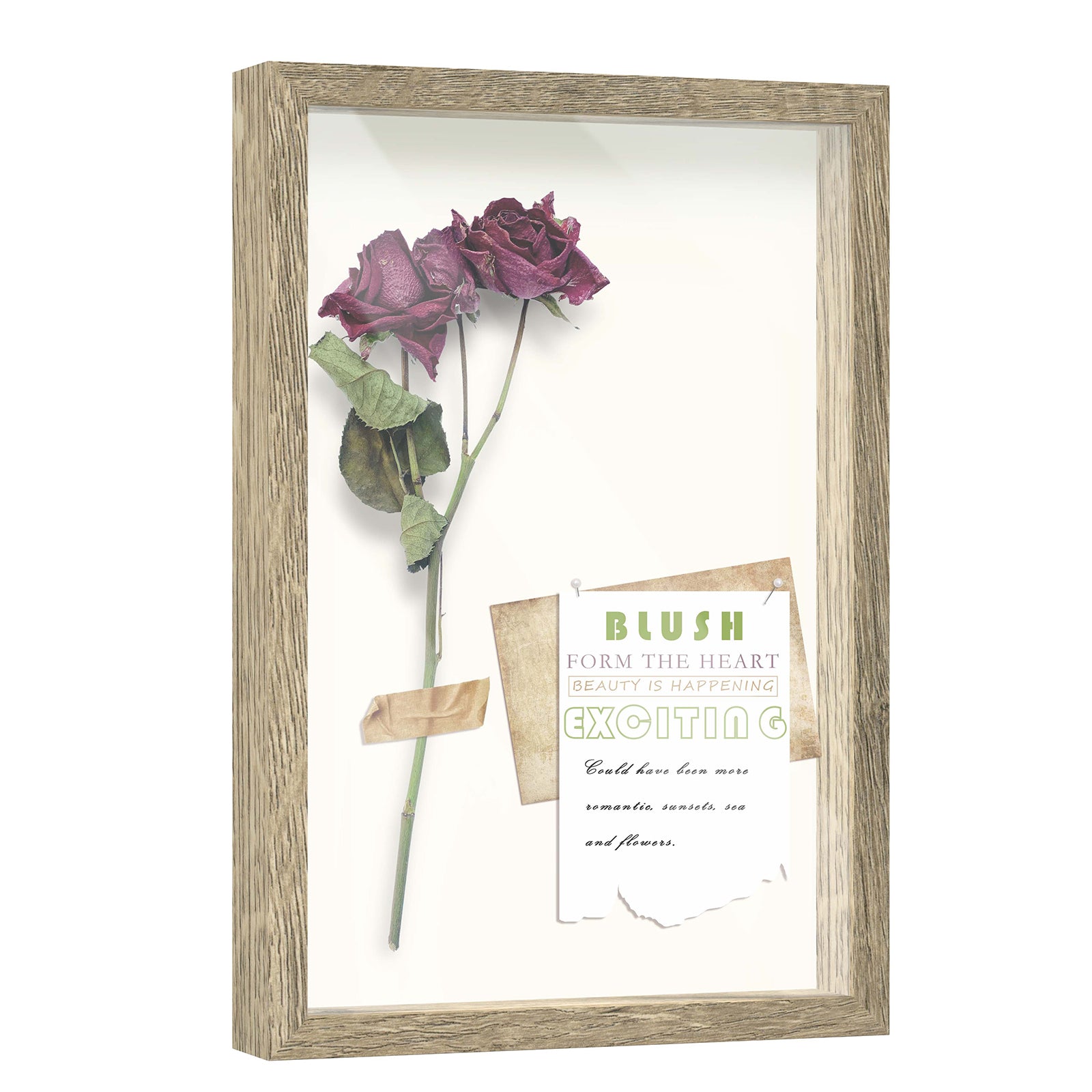 • Sturdy Frames – Made with strong wood and high-quality tempered glass. These frames are capable of holding photos, postcards, concert tickets, wine corks, pins, ribbons, or any memorabilia you desire.