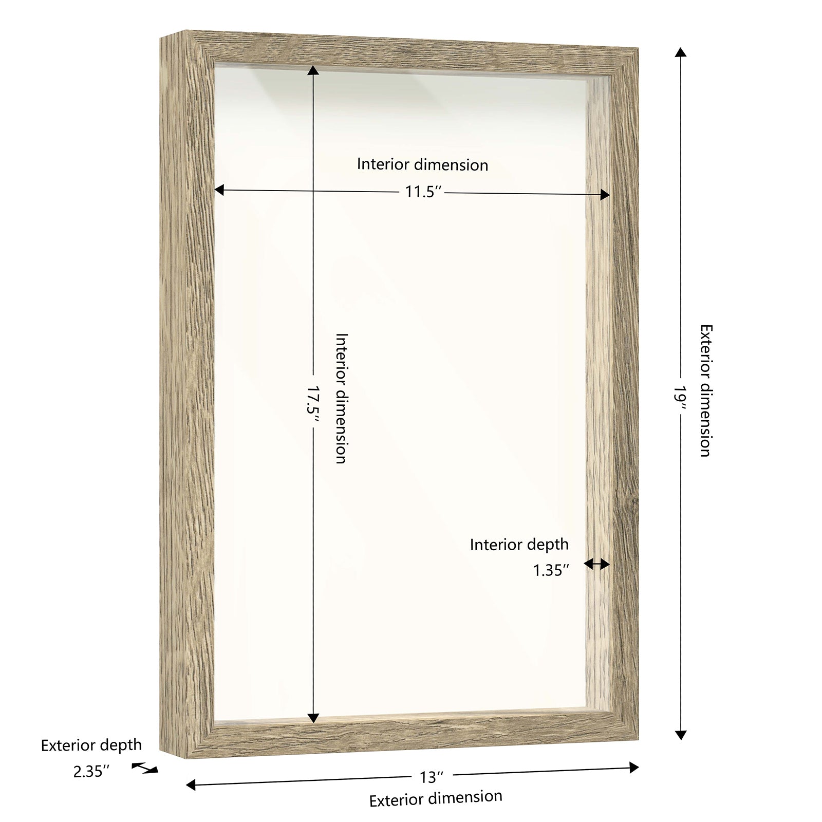 12" x 18" Natural Driftwood Finish MDF Wood Shadow Box Frame