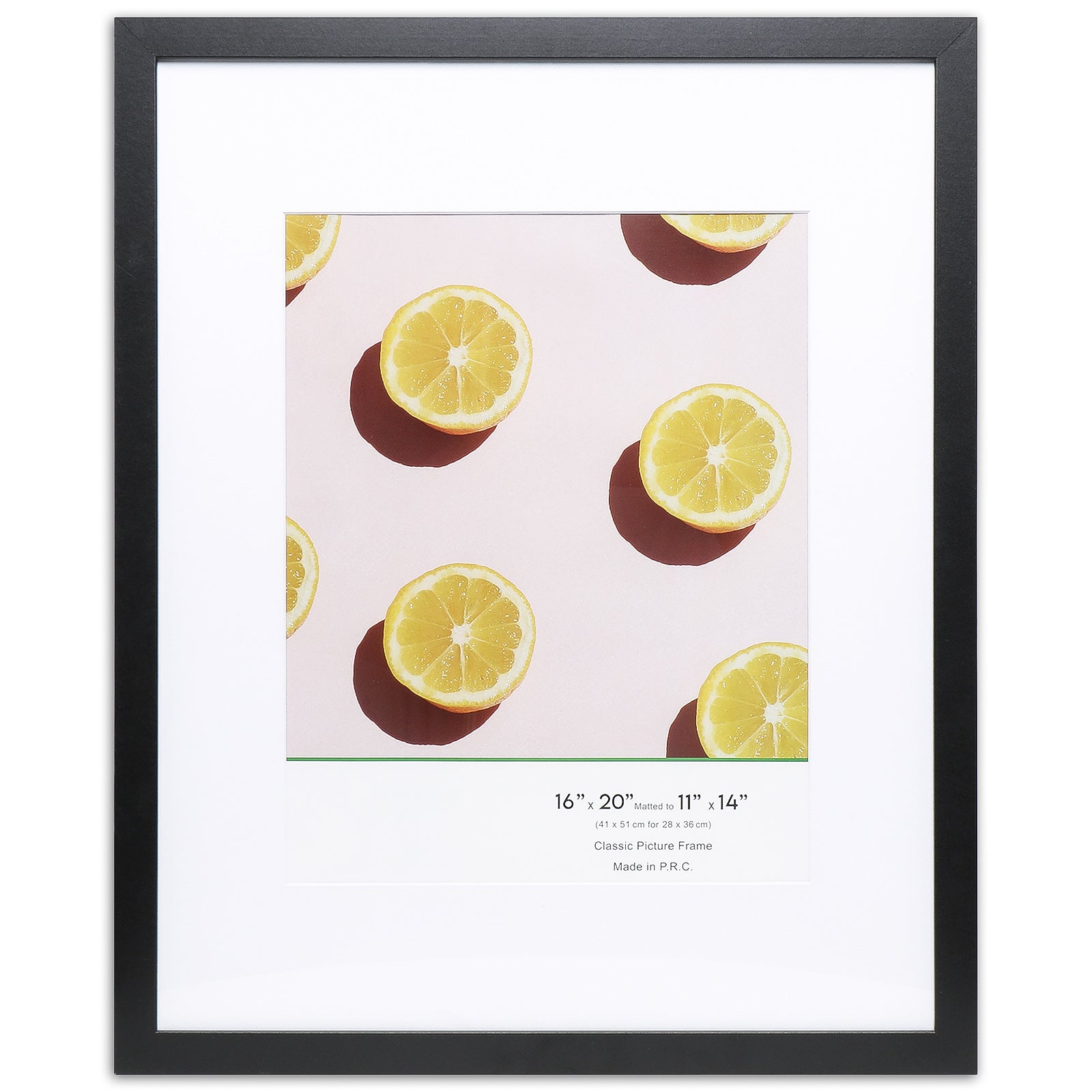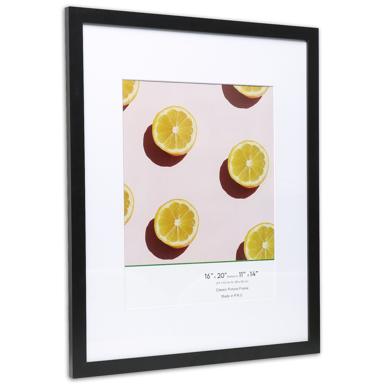 16" x 20” Classic Black MDF Wood Picture Frame with Tempered Glass, 11" x 14" Matted