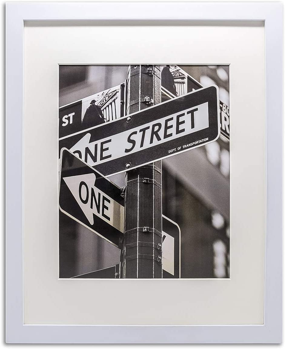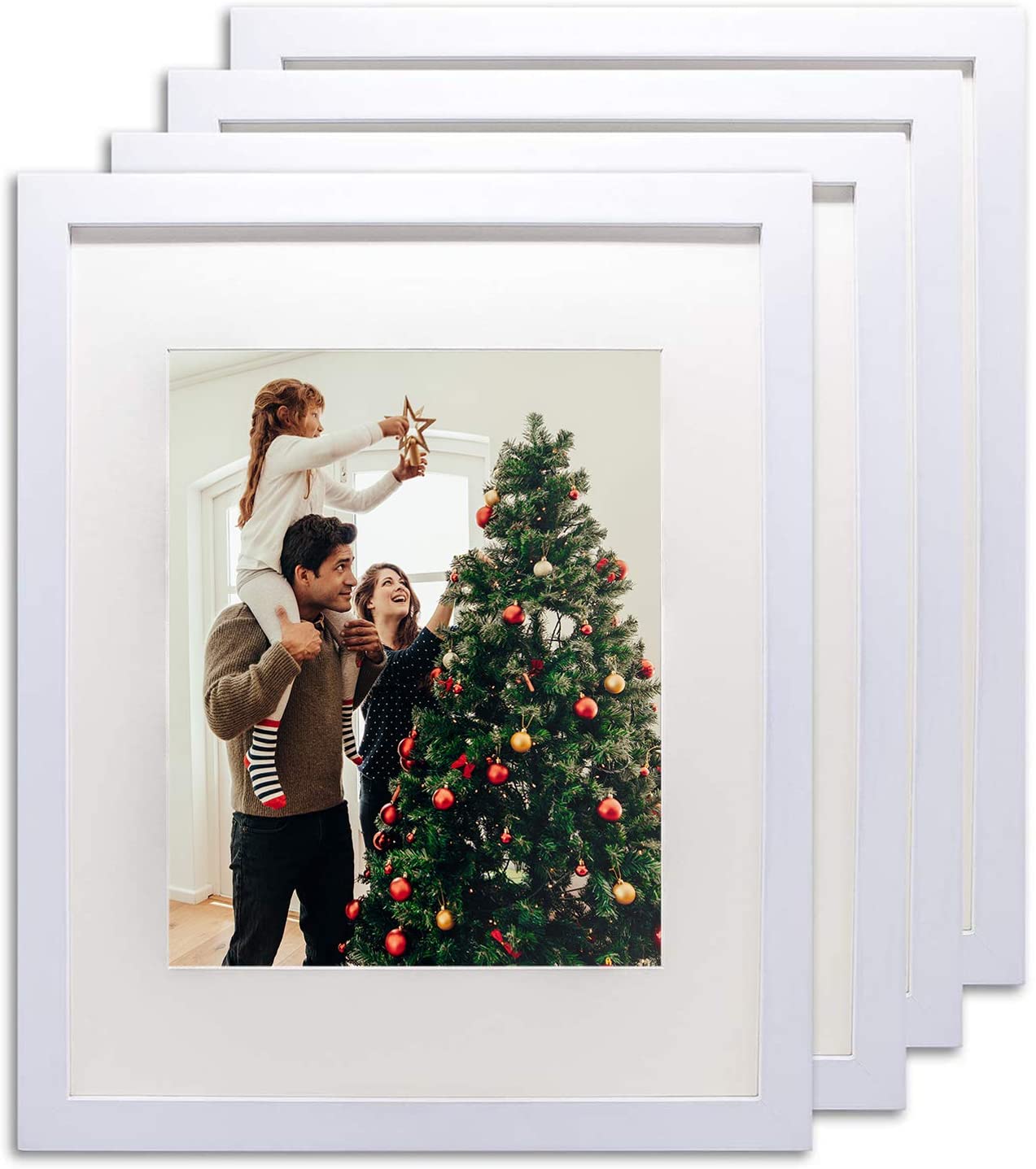16" x 20" White Solid Pine Wood Picture Frame with Tempered Glass, 11" x 14" Matted