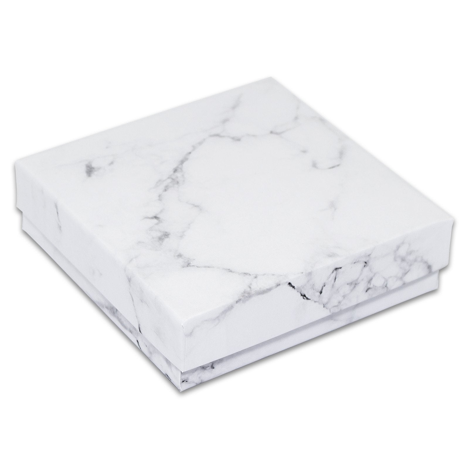 3 1/2" x 3 1/2" x 1" Marble White Cotton Filled Paper Box