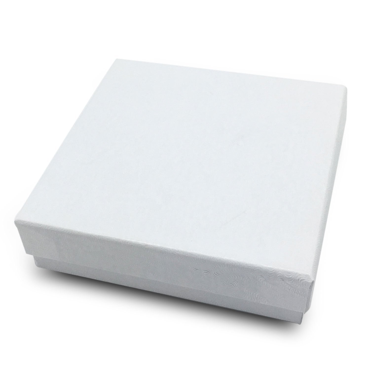 3 1/2" x 3 1/2" x 1" White Swirl Cotton Filled Paper Box