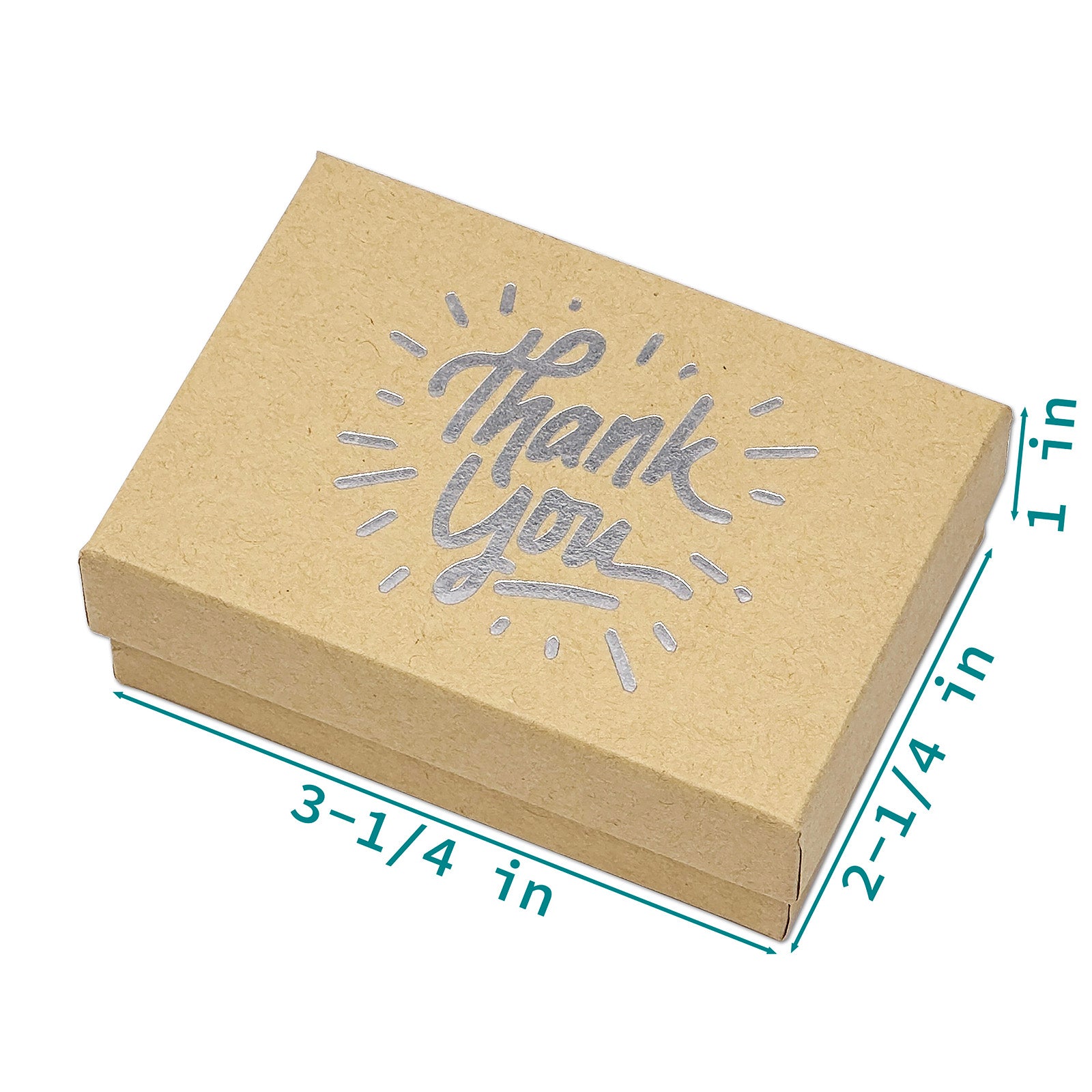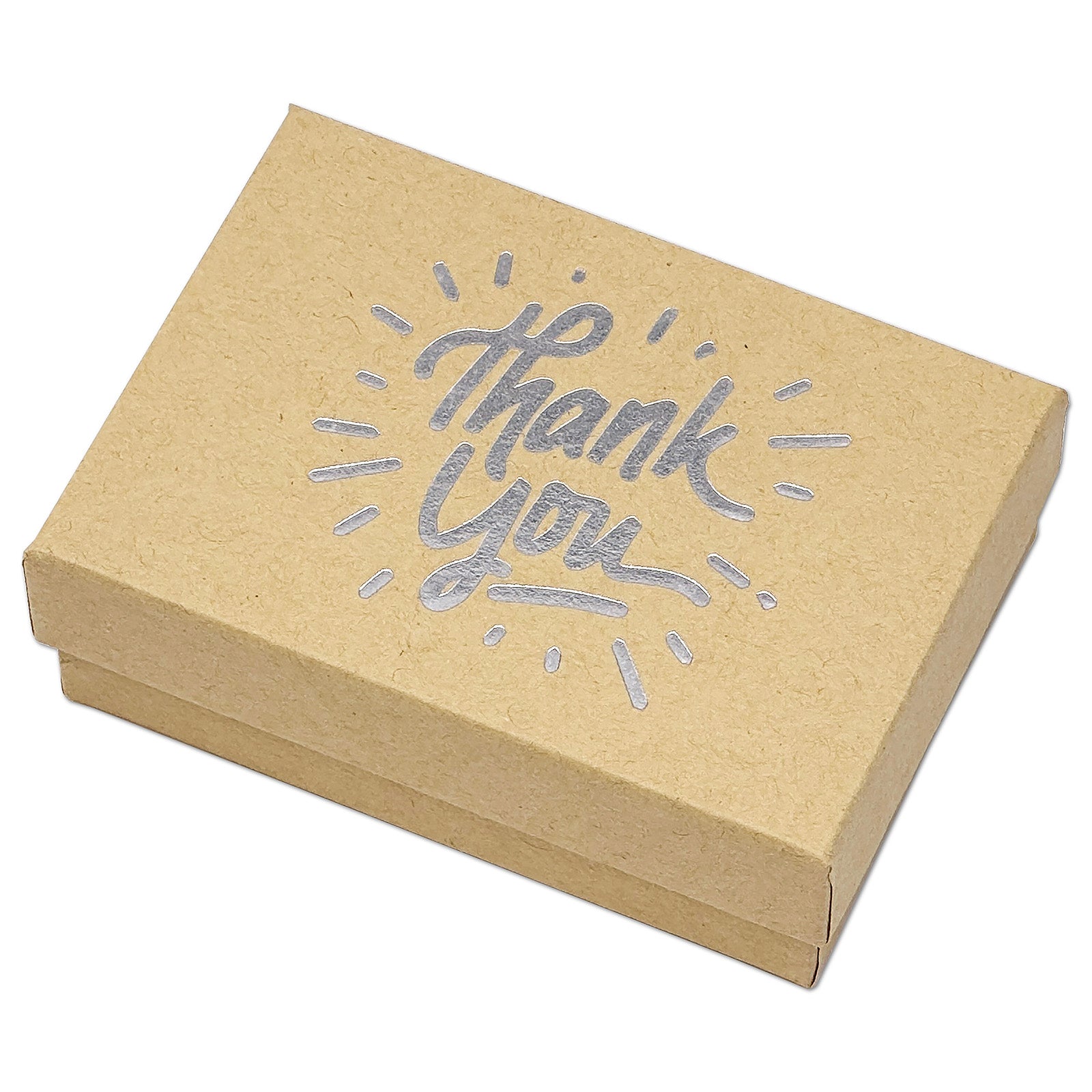 3 1/4" x 2 1/4" Kraft and Silver "Thank You" Cotton Filled Box