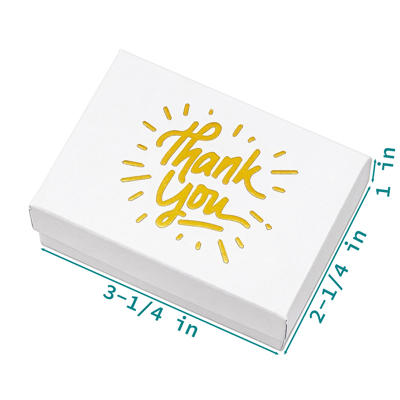 3 1/4" x 2 1/4" Matte White and Gold "Thank You" Cotton Filled Box