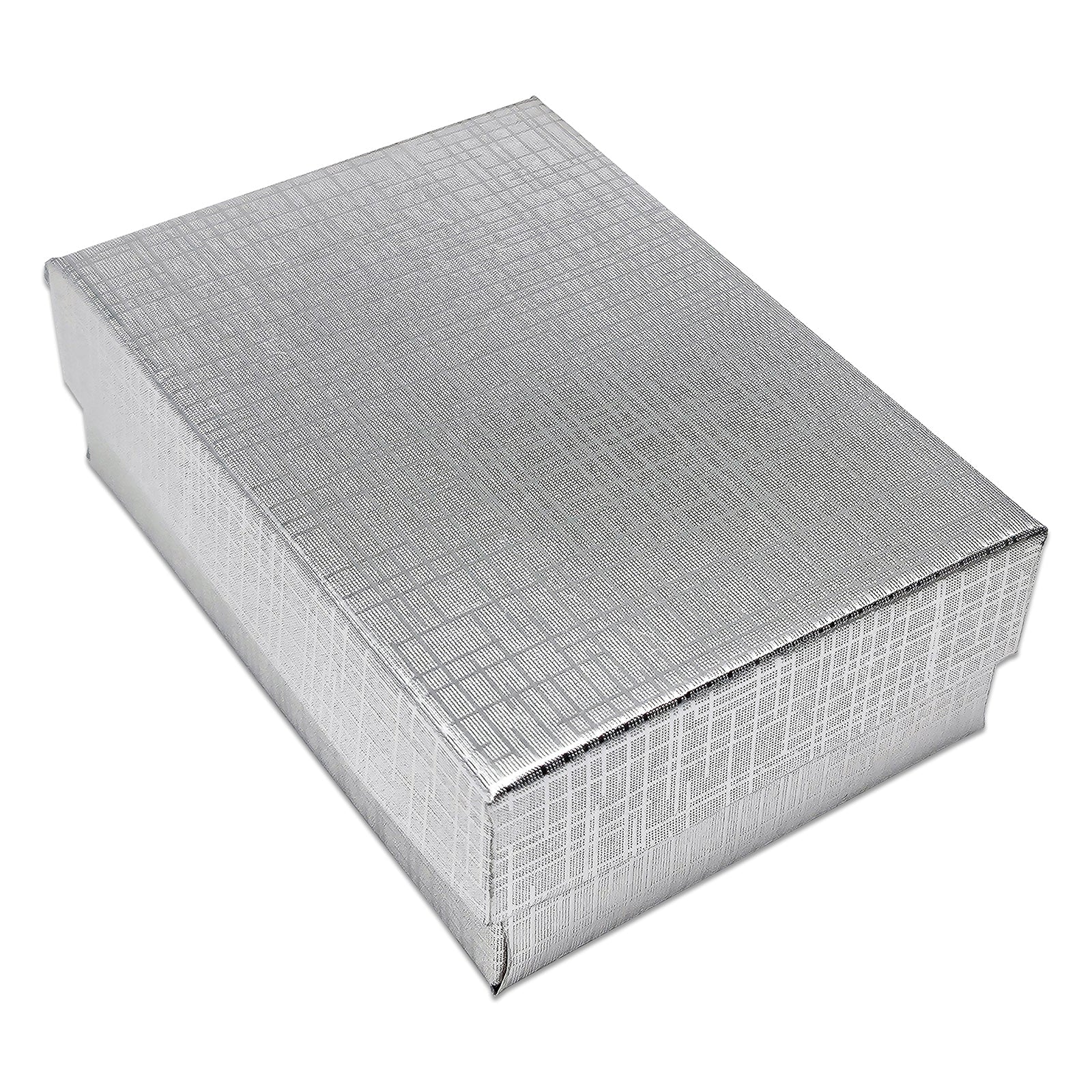 3 1/4" x 2 1/4" x 1" Silver Linen Pattern Cotton Filled Paper Box