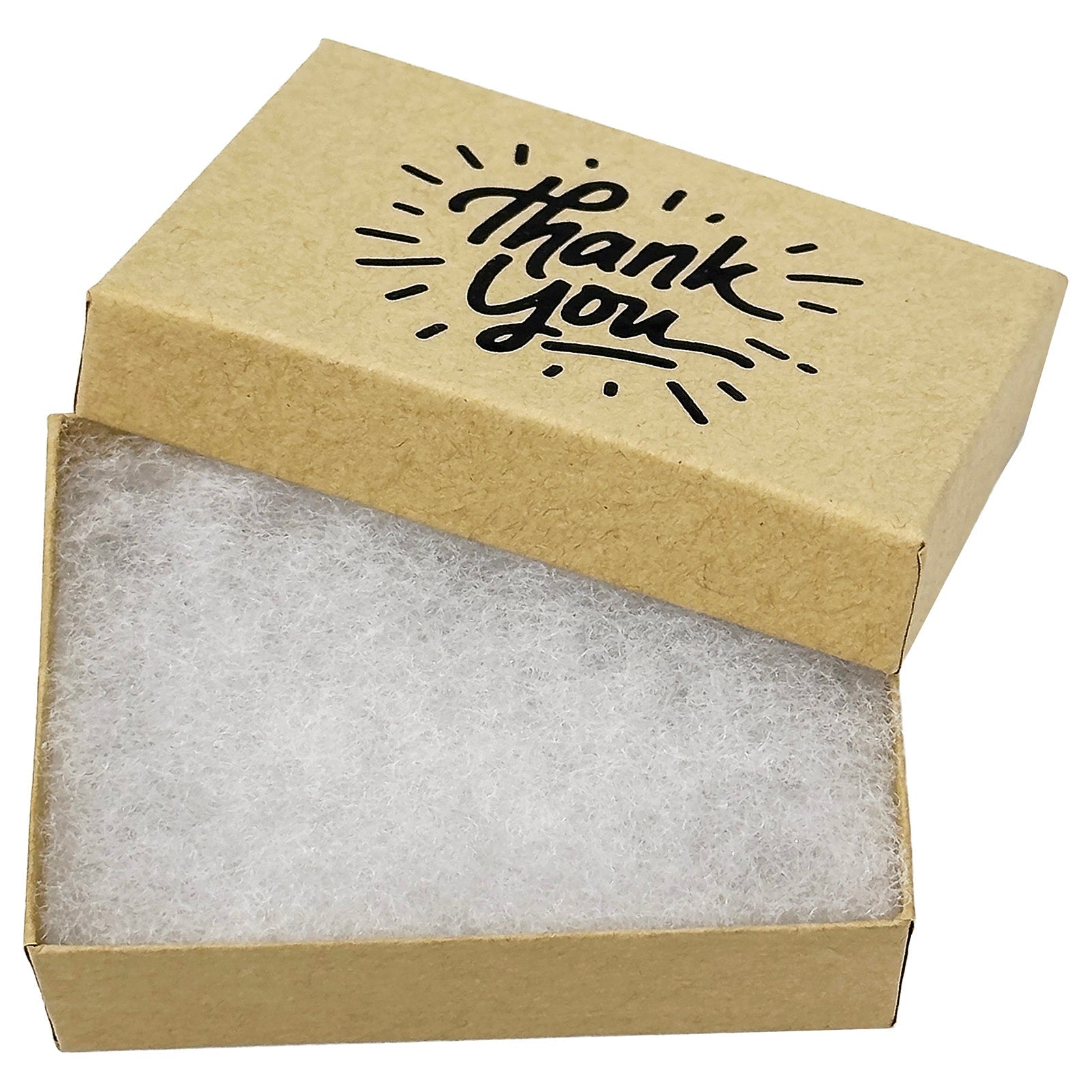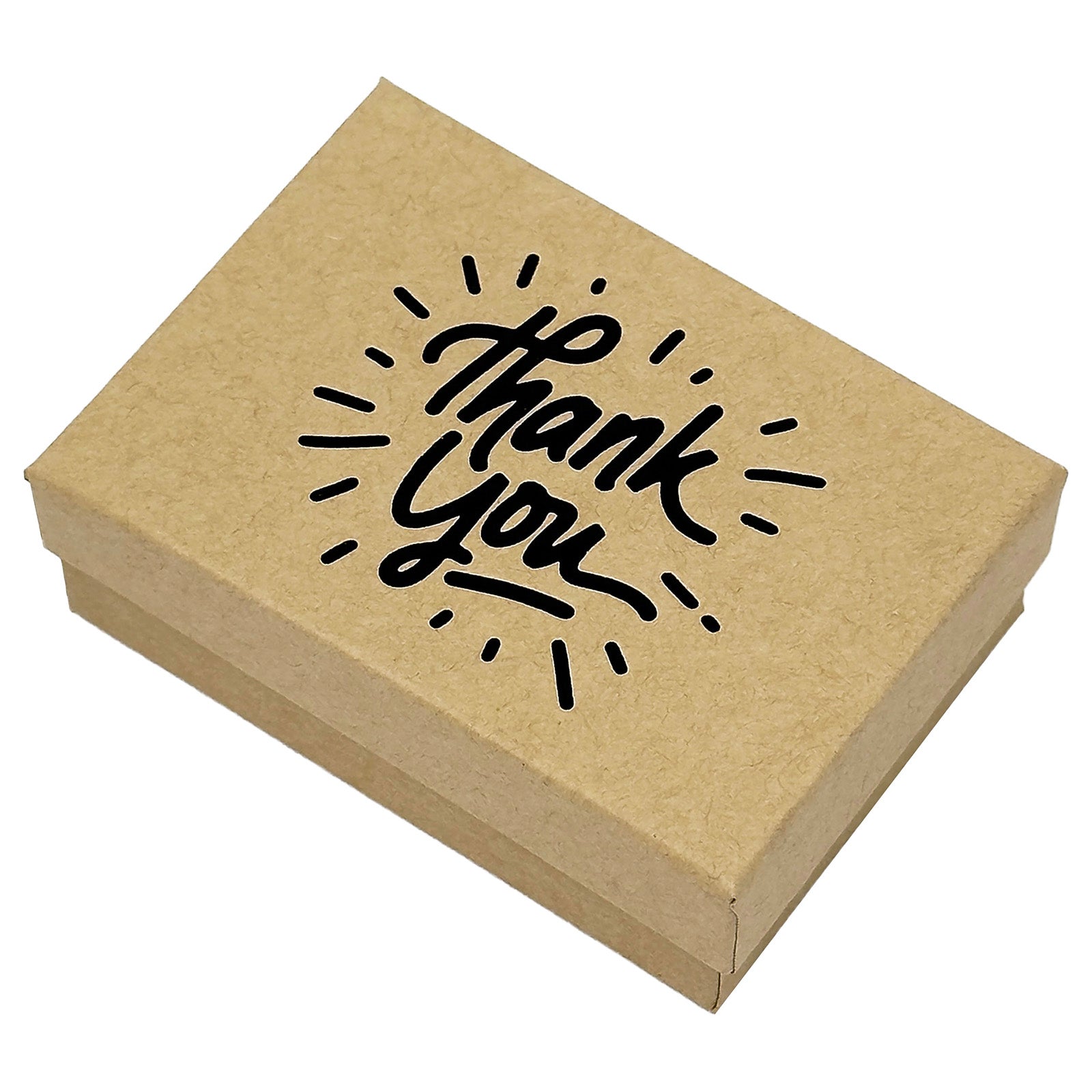3 1/4" x 2 1/4" Kraft and Black "Thank You" Cotton Filled Box