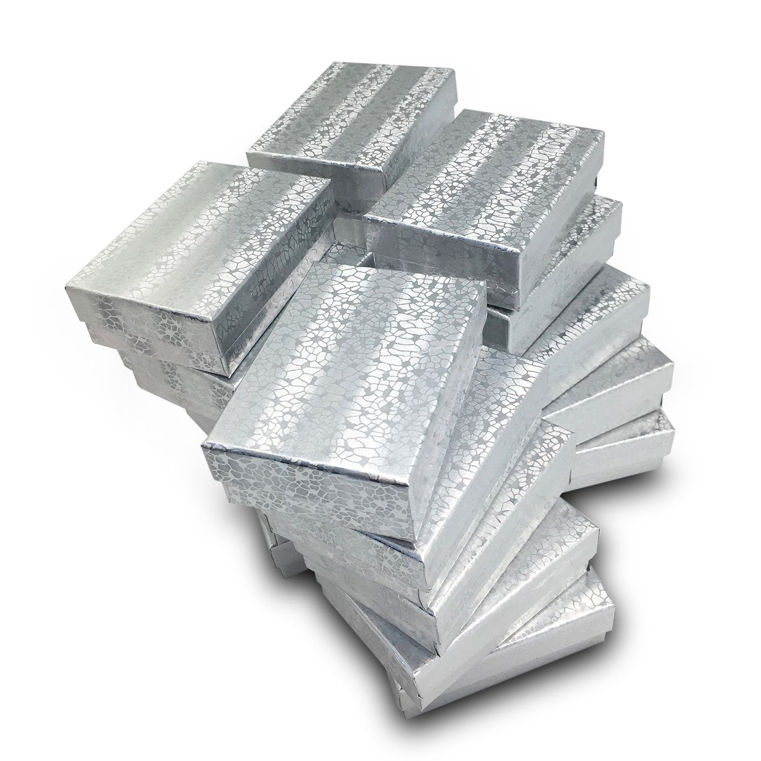 3 1/4" x 2 1/4" x 1" Silver Cotton Filled Box