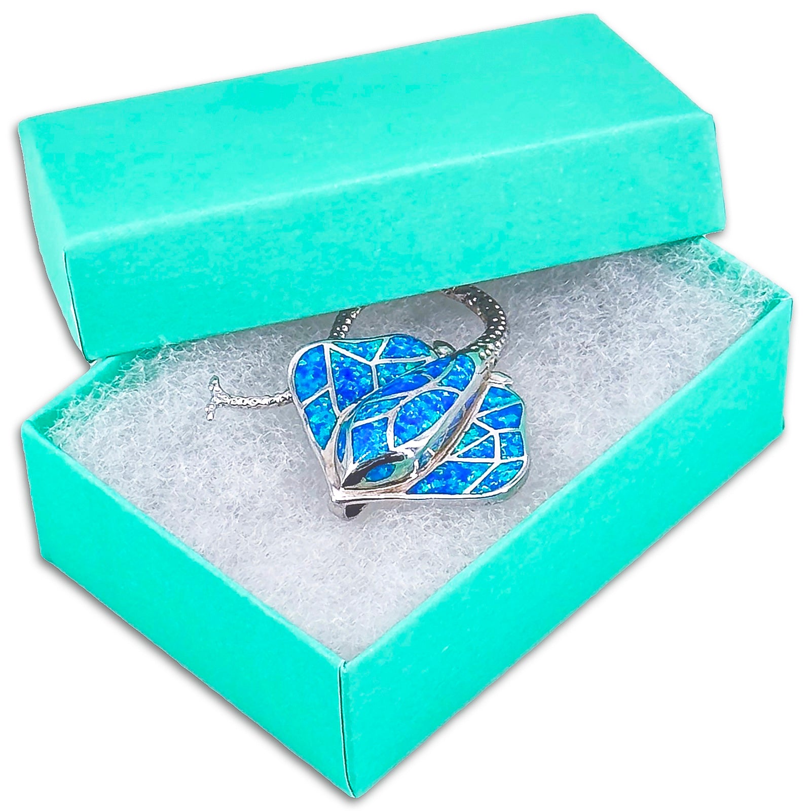 3 1/4" x 2 1/4" x 1" Teal Green Cotton Filled Box