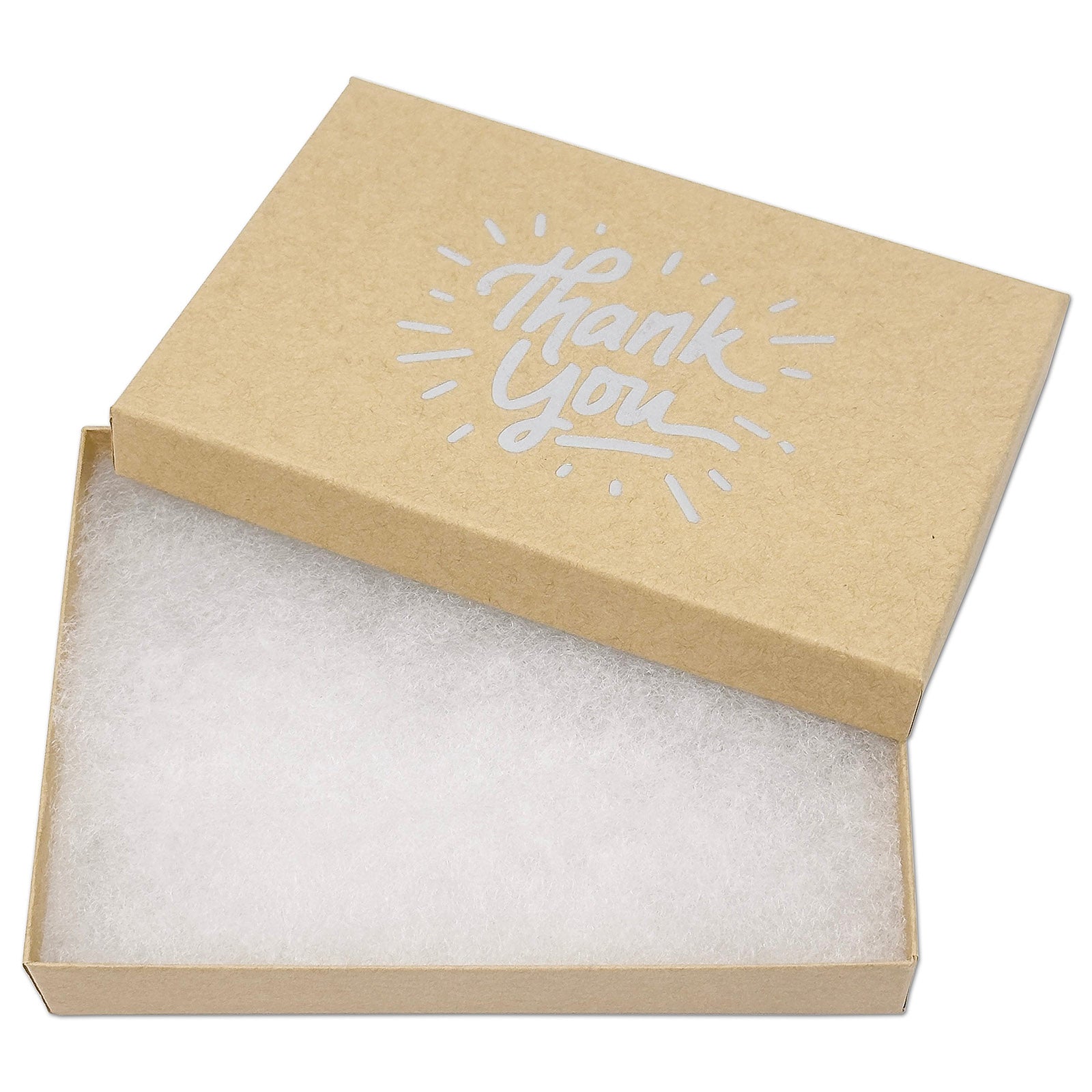 • A durable kraft cotton filled box with a silver "Thank You" print