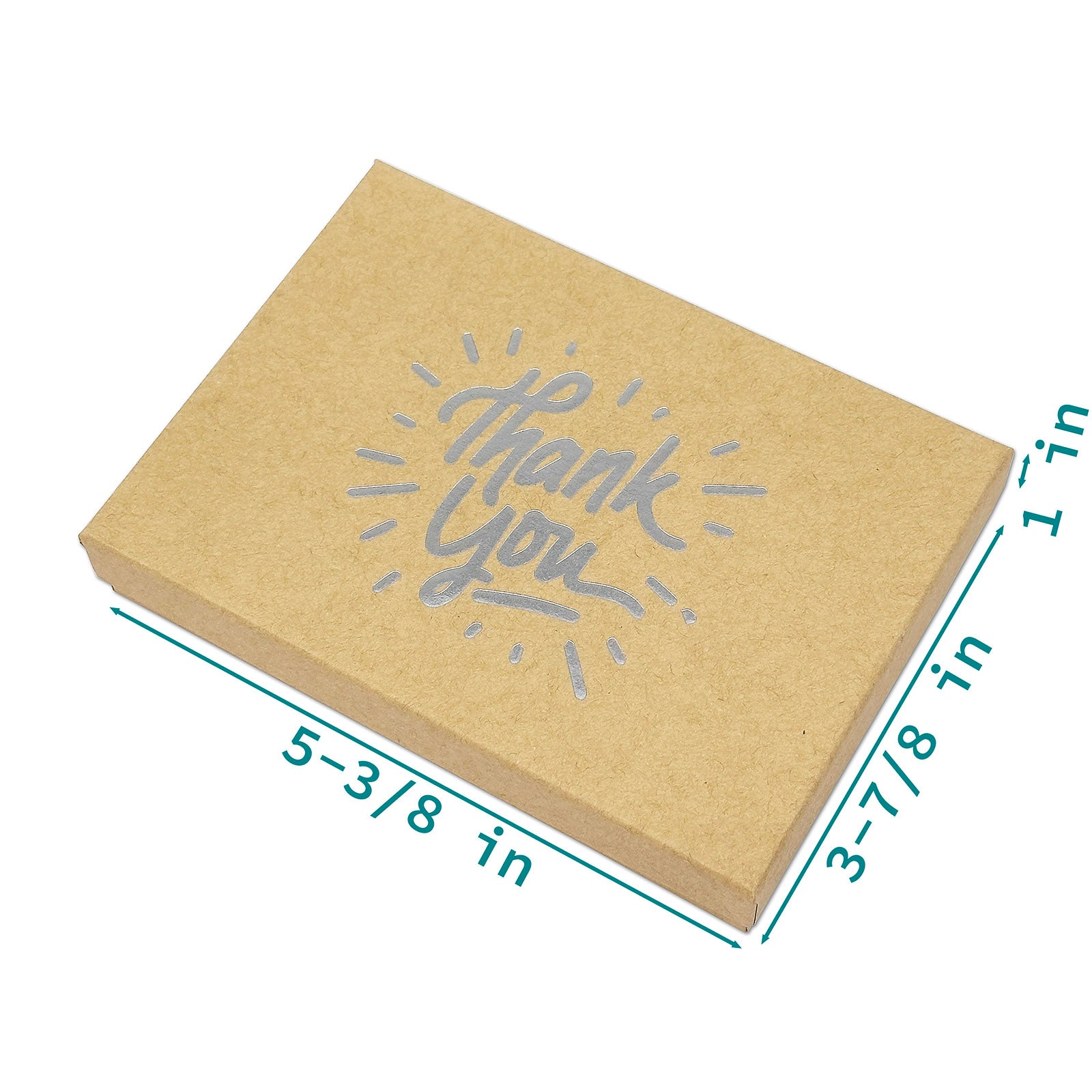 5 7/16" x 3 15/16" Kraft and Silver "Thank You" Cotton Filled Box