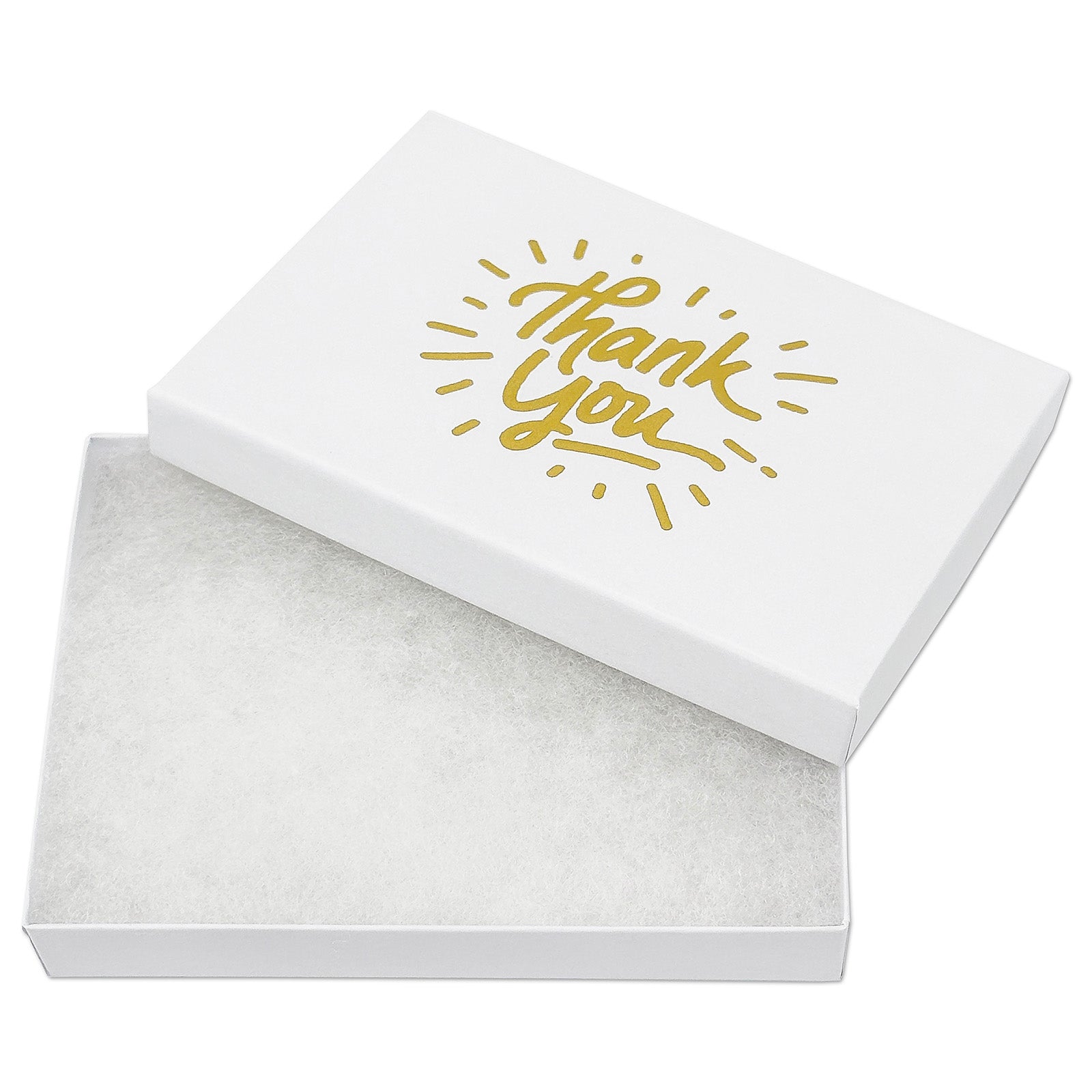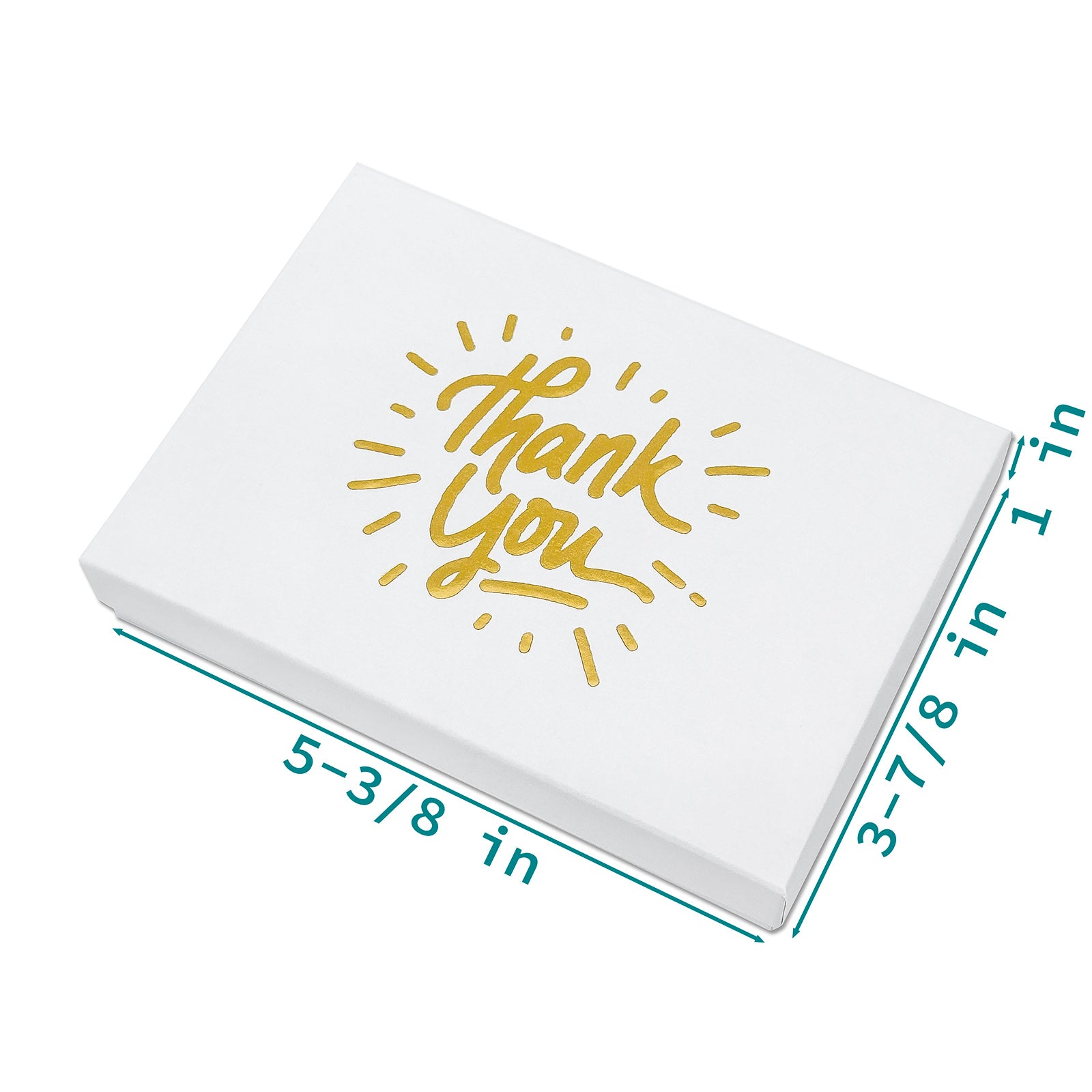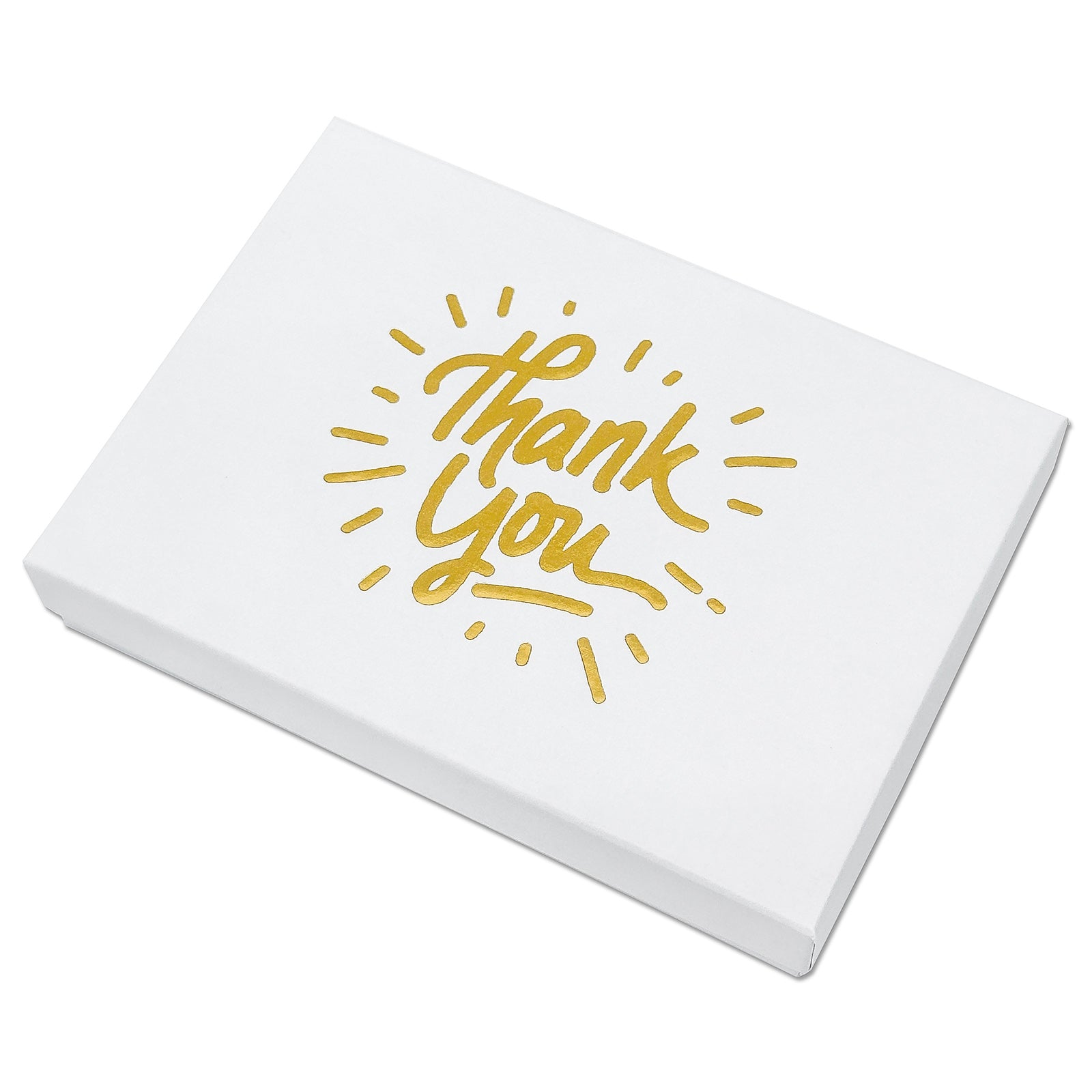 5 7/16" x 3 15/16" Matte White and Gold "Thank You" Cotton Filled Box