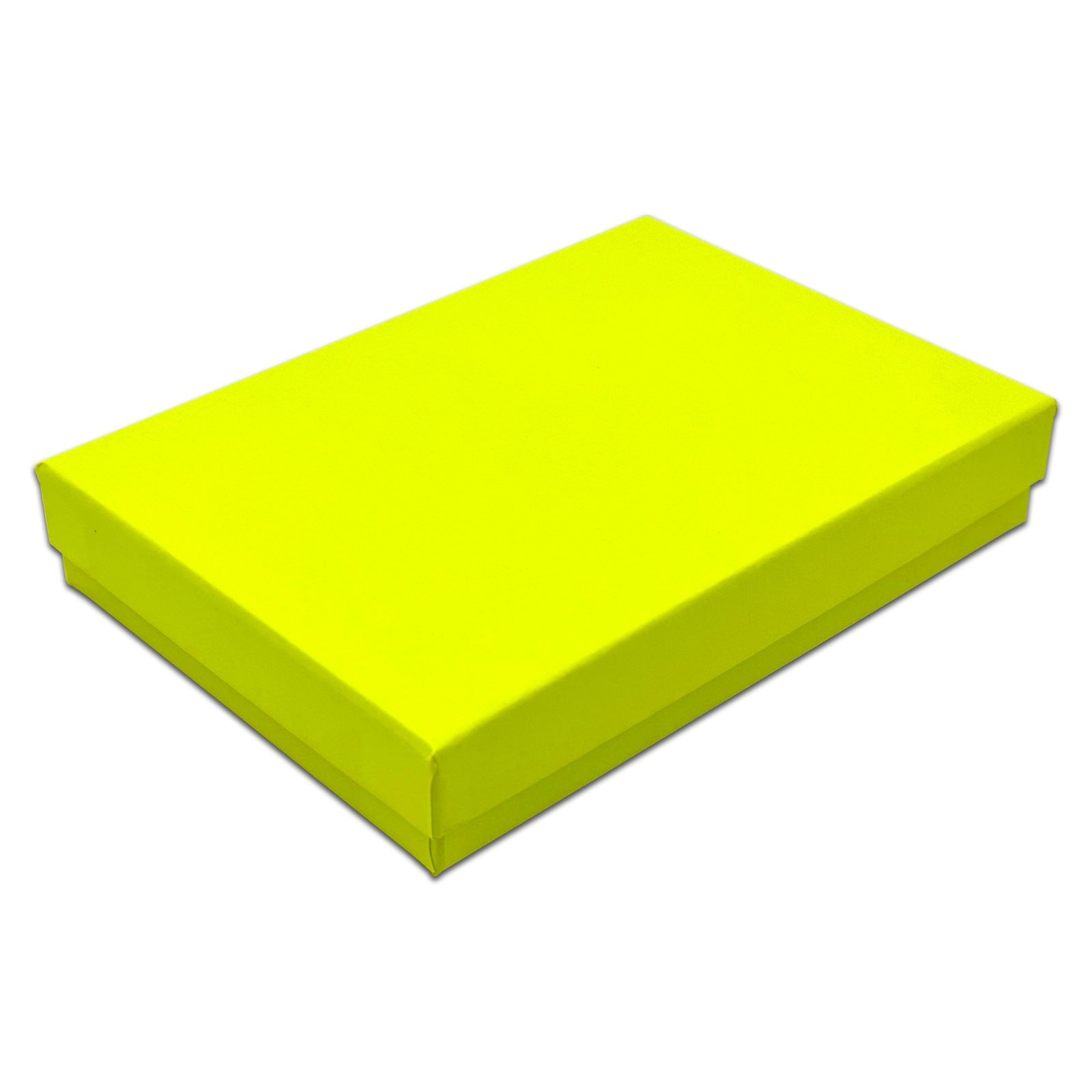 5 7/16" x 3 15/16" x 1" Neon Yellow Cotton Filled Paper Box (25-Pack)