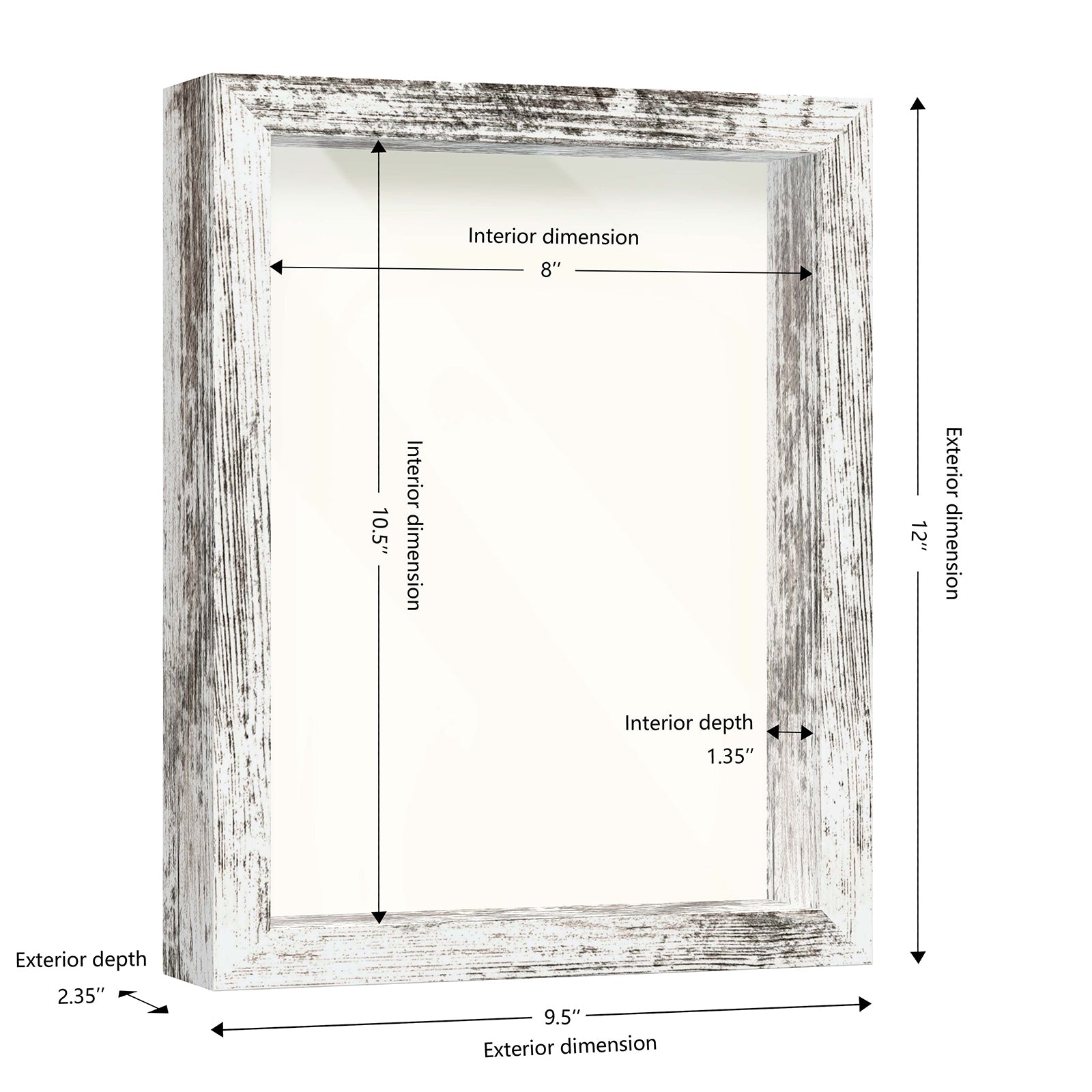 8 1/2" x 11" White Driftwood Finish MDF Wood Shadow Box Frame