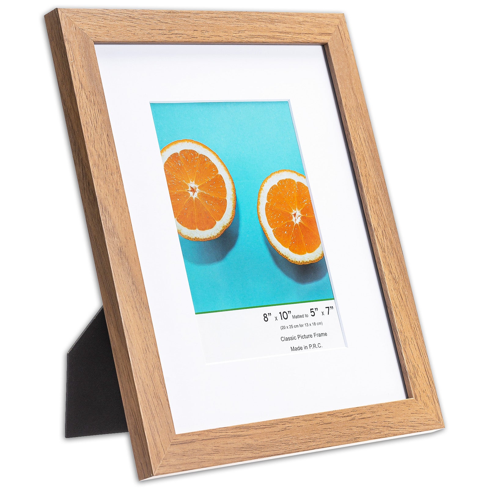 8" x 10" Classic Light Oak MDF Wood Picture Frame with Tempered Glass, 5" x 7" Matted