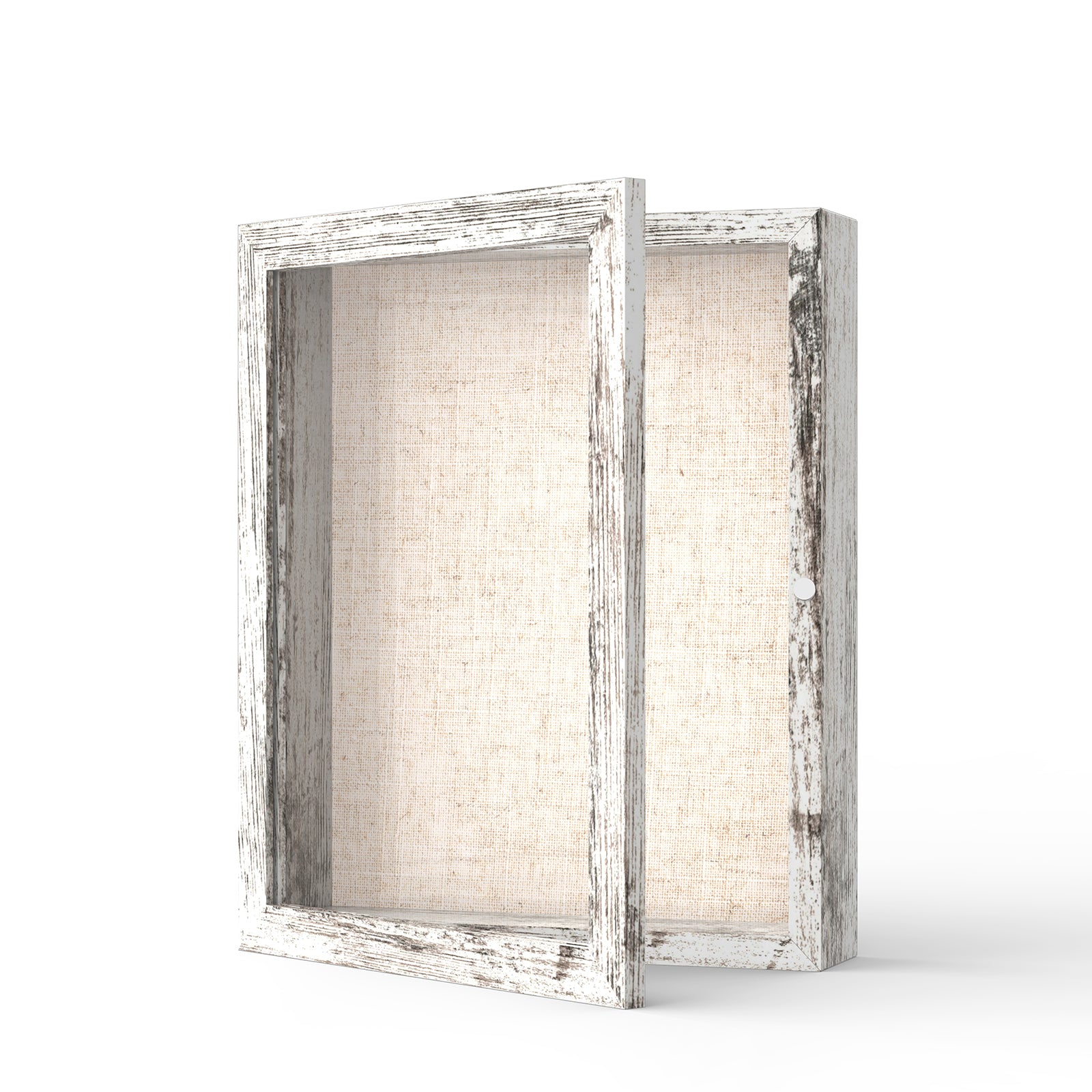 8" x 10" White Woodgrain MDF Wood Linen Backboard Shadow Box Frame