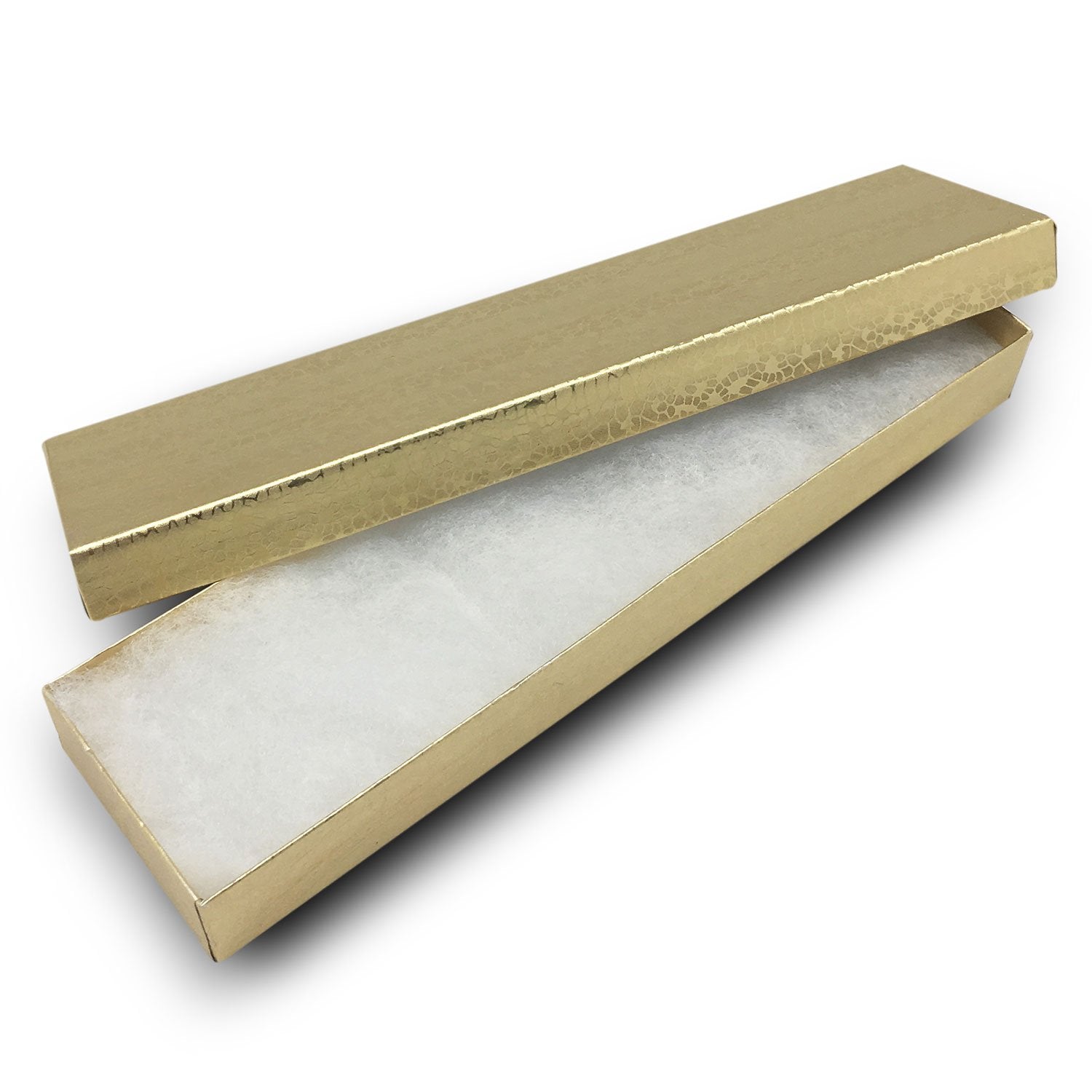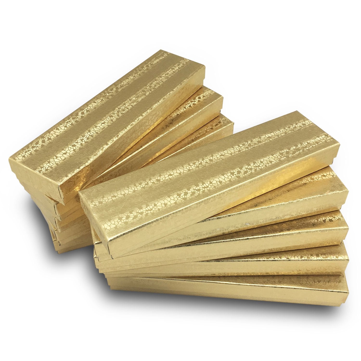 8" x 2" x 1" Gold Foil Cotton Filled Paper Boxes